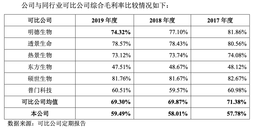 上市首日,赛科希德股价涨幅迅猛,截止今日收盘换手率高达70.79%,涨幅237.99%,收盘价为170.18元/股,市值138.95亿人民币。 自成立以来,赛科希德就专注于血栓与止血体外诊断领域的检测仪器、试剂及耗材的研发、生产和销售,不断地为医疗机构提供凝血、血液流变、血沉压积、血小板聚集等自动化检测仪器及配套的试剂和耗材。根据招股书,目前,赛科希德已发展成为国内技术领先的血栓与止血体外诊断领域的生产商之一。值得关注的是,当天科创50指数收跌0.93%,病毒检测股跌幅居前。赛科希德的这个表现也并不算好,开盘后价格一直疲软,甚至一度跌到了162元,最后的收盘价也低于开盘价的180元。赛科希德2017年-2019年,营业收入分别为1.57亿元、2亿元、2.30亿元,净利润分别为2900万元、5700万元、7100万元。从财务数据来看,公司的营收和净利保持较快增长,净利增长速度更快。报告期内,公司主营业务毛利率分别为57.78%、58.04%和59.49%,总体较为稳定且保持在较高水平,但整体低于同行业上市公司平均水平。但是公司的研发投入占营收的比重一直在下降。与之相比的是同行业可比公司研发投入占比均值分别为12.32%、12.19%、12.45%和14.73%。在2018年和2019年,赛科希德的研发投入占比在可比公司当中排倒数第一。