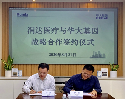 2020年8月21日,润达医疗与深圳华大基因股份有限公司(以下简称“华大基因)正式签署战略合作协议。此次签约,双方将本着“合作共赢、优势互补、共同发展”的原则,建立定期沟通机制、工作协调机制,充分发挥双方在科研、技术、渠道、服务等方面优势,构建长期稳定、互利共赢的战略合作关系,共同推进精准检验平台共建及公共卫生平台建设领域的深入合作。 左:润达集团总经理 刘辉 右:华大基因CEO 尹烨 签约仪式上,润达医疗总经理刘辉、华大基因CEO尹烨分别代表润达医疗和华大基因签署了战略合作协议。双方表示,两家企业在精准医疗领域具有广阔的合作空间,双方将依托各自资源和技术优势,致力于推进精准检测技术在医疗体系应用前移,从疾病诊断转向预防为主;致力于促进以基因科技为代表的精准检测技术,在疾病预防与筛查、精准诊断和治疗等领域的发展。