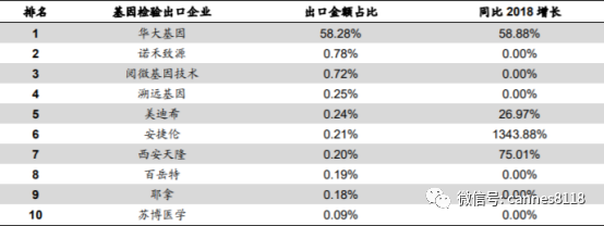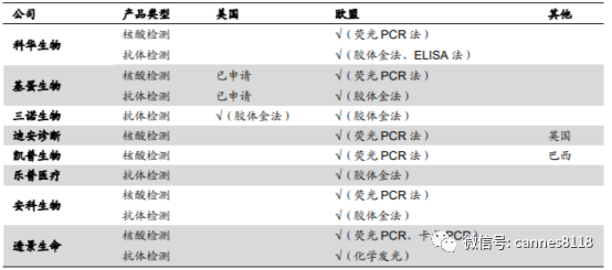 核酸类产品为主,抗体类产品为辅,国内 29 企业 NMPA 获批 截至 5 月 21 日,国家药监局颁发的新冠病毒检测产品注册证共 38 个,涉及 IVD 企业 29 家,其中包括病毒核酸和抗体检测产品。核酸检测产品以传统的荧光 PCR 法为主,个别产品采用了较为新型的恒温扩增、RNA 探针等方法,这些 新方法一般在操作便利性和检测时效上有所提升,但可能需要相应的配套设备, 产品推广受制于仪器的普及程度;抗体检测以胶体金法为主,少数为化学发光 法。其中,国内注册上市的产品有 23 家在海外获得 FDA、CE 或者其他国家认 证。 “双证”限制解除,海关 100%审核验放 为了严把防疫物资出口质量关,3 月 31 日,商务部、海关总署、国家市场监督 管理总局等三部委联合下发通知(2020 年第 5 号),要求企业出口防疫物资须 满足“国内+海外”双证齐全,仅凭“海外单证”无法出口;然而,4 月 25 日, 三部委再次下发通知(2020 年 12 号),允许“海外单证”企业出口防疫物资, 要求企业提交声明,承诺产品符合进口国质量标准和安全要求,海关凭医保商 会企业清单验放。 目前,5 号公告和 12 号公告同步执行,如果防疫物资按照中国质量标准出口, 需提供 NMPA 证书;如国按海外质量标准出口,生产企业应为医保商会公布的 “清单企业”。 在物资出口政策放松的同时,海关查验更为严格,对防疫物资实施 100%单证 审核。5 月 12 日,商务部新闻稿提到:暂停以“市场采购贸易”方式出口部分 防疫物资,采用“一般贸易”等方式报关出口。“市场采购贸易”的特点就是“短 平快”,主要针对的是单子小、货物杂、品种多的出口贸易,比“一般贸易”通 关更快,也更方便。 超百家中国企业获得海外认证,出口井喷 从中国医药保健品进出口商会获悉,截至 5 月 20 日,累计有 188 家中国企业 取得海外注册认证,涵盖核酸和抗体检测产品,其中包括美国 EUA 认证 7 家、 澳大利亚 TGA 认证企业 3 家、欧盟 CE 认证企业 178 家,并且多家企业获得 不同出口国“双证”。 下图:部分国内企业新冠病毒检测产品海外认证情况 防疫物资出口政策取消“双证”限制,对以上持有海外单证的新冠病毒检测企 业是一大利好。 据海关统计,3 月 1 日至 4 月 30 日,全国共验放出口主要防疫物资价值 712 亿元。包括:口罩 278 亿只,防护服 1.3 亿件,新型冠状病毒检测试剂盒 7341 万人份,红外测温仪 1257 万件,呼吸机 4.91 万台,病员监护仪 12.4 万台,护 目镜 4363 万副,外科手套 8.54 亿双。 4 月份以来,我国出口防疫物资呈明显增长态势,日均出口额从上旬的约 10 亿 元,增至月末日均 30 亿元以上,一个月内持续增长逾 3 倍。 另根据商务部业务统计,截至 4 月 25 日,已有 74 个国家和地区、6 个国际组 织与我国企业签署了 192批次医疗物资商业采购合同,累计金额达 14.1亿美元;72 个国家和地区、8 个国际组织正与我国企业开展 129 批次的商业采购洽谈。 中国 31 个省区市通过市场化采购方式,已经向 191 个国家和地区出口了防疫 物资。 亚、欧、美是中国 IVD 主要出口国,广东是主要出口省份 根据海关统计数据,2019 年中国共向 185 个国家和地区出口,出口总额高达约 7.2 亿美金。其中亚洲地区占 45.99%,欧洲地区占 24.37%,北美地区占 18.10%, 其余 11.54%分布在南美、非洲、大洋洲等地。在 IVD 产业各省出口贡献中, 广东出口额占 65.19%,位居第一,远超第二名江苏省 9.35%。 根据设备检验环境划分,POCT类出口额3.39亿美元,占IVD设备整体约47%。IVD 设备企业中,迈瑞医疗出口高居榜首为 31.07%,远超第二名;在 POCT (含血糖仪)出口企业中,艾康、亿朋、万孚位列三甲,占比均超过 10%。 下图:2019 年 IVD 设备企业出口前 10 占比 下图:2019 年 POCT 企业出口前十占比 2019 年基因类检验产品共计出口约 1654 万美金,整体出口金额同比 2018 年 增长 58.26%。华大基因位列榜首,出口金额占比 58.28%,远超第二名(仅为 0.78%)。 二级医院核酸检测全覆盖,仪器+试剂需求暴增 4 月 26 日,国家卫健委召开全国新冠病毒疫情常态化防控工作电视电话会议, 会上要求所有县区级以上疾控机构、二级以上综合医院要抓紧进行改造,在短 时间内形成核酸检测能力。 截至 2019 年 2 月末,我国共有三级医院 2762 个,二级医院 9730 个。二级医院主要是向多个社区提供综合医疗卫生服务的地区性医院,此次卫健委在上一 次要求核酸检测能力覆盖到三级医院的基础上,进一步提出覆盖到二级医院(此 前曾),核酸检测机构将扩大到市、县、区,市民检测更方便。同时,各地在公 立医疗卫生机构检测能力不能满足需求时,支持与第三方医学检验实验室合作 开展核酸检测,充实检测力量。扩大检测范围,做到重点人群“应检尽检”、重 点行业“适时抽检”、一般人群“愿检尽检”。 在建设进度上,已有数个省市公布了 PCR 实验室建设进展或时间表: 黑龙江:截至 5 月 6 日,全省 62 家 3 级、29 家 2 级医院具备核酸检测能 力,全省 67 个县有 33 个县可在县域内开展检测。 浙江:4 月底前各县(市、区)至少有 1 家医疗机构具备检测能力,5 月 底前各级疾控机构和三级医院全部具备检测能力,6 月底前开设发热门诊 的二级以上医院全部具备检测能力。 内蒙古:力争到 5 月 30 日,每个旗县(市、区)至少有 1 所旗县级医院能够 开展新冠病毒核酸检测,全区各三级医院全部能够独立开展新冠病毒检测。 济南市:5 月 30 日前,县级疾控中心全部具