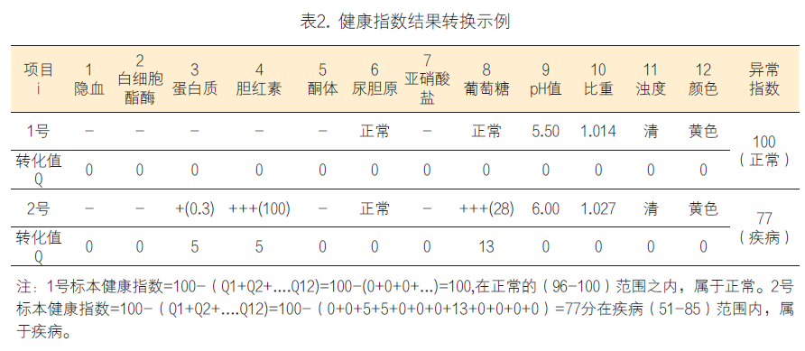 杨大干 浙大一院检验科副主任 主任技师,学术兼职:中国合格评定国家认可委员会评审员,中国中西医结合学会检验医学分会信息智能化专委会副主任委员,中国研究型医院学会检验医学专委会信息学组委员,浙江省医学会检验医学分会管理与智能学组副组长。承担国家科技支撑计划子课题负责人3项。承担浙江省科技厅公益项目1项、浙江省厅级科研项目5项。以第一/通讯作者发表SCI论文8篇。副主编、参编著作7部。获浙江省医药卫生科技奖三等奖2次。参与制定数字化医学实验室类行业标准5个。主要研究方向:临床基础检验;实验室认可、认证;实验室信息化和智能化。 实验室检查对疾病的预防、诊断、治疗、监测和预后具有重要意义,占临床诊断、治疗等决策信息的60%以上[1]。全面、有效地利用检验结果报告中蕴含的信息,将实验室诊断和治疗信息最大程度的传达给临床,使检验更好地为临床服务。人工智能是一项使用机器实现、代替人工实现认知、识别、分析、决策等功能的技术,其机器学习、数据挖掘等技术能够深入探究检验数据可能蕴含的关系及意义,建立检验解释性报告,辅助临床决策。 一、检验报告的现状和不足 目前,医学实验室提供的检验报告大都以数值型报告为主, 报告单主要显示患者、标本和检验过程等相关信息,以及检验项目、结果数值、参考区间。有的检验报告单上有备注内容, 大都是关于标本状况是否合格、结果对临床是否可以参考的说明。检验报告单必须与患者的具体临床表现结合才能体现其价值,单纯的数值型检验报告,并不能直接体现检验科工作人员对检验结果临床价值的认知及判断,需要临床医生解读其临床价值。 但检验诊断报告涉及多个检验亚专业,偏重于临床,缺乏信息技术或人工智能的支撑,目前还是难以实施或采用,只停留在形式或极个别检验报告单上。另外,国内检验医师匮乏,技术人员临床专业能力不足,不能向医生或患者很好地解释其结果的临床意义,尤其是多个检验项目的综合判断以及与临床结合的分析,难以承担解释和咨询工作。国内检验人员更多是处于“技师”的工作状态,多负责仪器的日常维护和保养、定标和质控、临床标本的预处理、日常检测及结果的发放等,这种工作状态已不能满足现代医疗环境的要求。 以尿液检验为例,介绍智能检验分析技术。尿液检验属于无创伤性检验,临床应用广泛,对糖尿病、肾小球肾炎等多种疾病诊断有重要价值。尿液检验包括定量,半定量结果,标本类型有晨尿、随机尿、餐后尿等多种。 二、数据来源 收集浙江大学医学院附属第一医院就医患者约360万尿液样本检验数据,包括门诊、住院、体检等病人来源。收集信息包括病人信息:年龄、性别、临床诊断;检测项目信息:酸碱度(PH)、比重(SG)、白细胞酯酶(LEU)、胆红素(BIL)、蛋白质(PRO)、胆原(URO)、葡萄糖(GLU)、颜色(Color)、浊度(turbidity)、隐血(ERY)、亚硝酸盐(NIT)、酮体(KET)。 1. 大人群分布和异常结果分级:统计体检人群尿液检验每个项目不同结果数据频数,建立每个项目不同结果的人群分布,以蛋白质为例,结果见表1。生活习惯、年龄结构、流行病学等因素对人群分布都有影响,宜建立适合当地的数据库。根据人群数据分布,各项目的重要程度和结果的异常程度,将结果异常等级分为正常(0)、轻度(1)、中度(2)、重度(3)、极度(4)五级,以蛋白质为例,结果见表1。 2. 患者教育:结合诊断结果提供相应患者教育的内容。患者教育包括项目解读、复检建议和个性化建议。宜采用通俗化的语言,便于患者的理解。项目解读可以缩短医患之间交流时间,且可避免因口头解释不当引起的医患矛盾。个性化建议的内容可以对病人的行为有一定的指导意义,利于疾病的防治。蛋白质解释示例:(1)临床意义:尿蛋白升高代表肾小球和肾小管的功能出现损害,但不一定是肾脏疾病。常见于① 肾小球性蛋白尿:见于急性肾小球肾炎、肾盂肾炎、肾病综合征、肾肿瘤等。② 肾小管性蛋白尿:见于间质性肾炎、药物损害等。③ 混合性蛋白尿:见于慢性肾炎、糖尿病肾病、狼疮肾炎等。(2)影响因素:检查前应进食均衡,避免单一摄入过多肉类或蔬菜、水果。过量饮水可造成尿蛋白定性试验结果偏低或假阴性。剧烈运动、发热、精神紧张等生理状态时,尿蛋白定性一般不超过1+,定量小于0.5g/24h,多见于青少年。由于血液、脓液、黏液或生殖系统分泌物等混入尿液中,导至尿蛋白定性试验阳性。 3. 健康指数算法模型建立:根据计算结果将健康指数人为划分为正常(96-100分)异常(86-95)疾病(51-85)危重(0-50)四个等级。 健康指数 (i=项目;Q=异常指数),Q即异常指数,来源基于单个项目的异常程度和不同权重。蛋白质的异常指数见表1。在有了异常指数转换的基础上,利用健康指数公式进行计算得到健康指数。以表2为例进行说明。如果说异常等级和人群分布显示的是一位患者单项结果的异常程度,那健康指数反映的就是患者整体的情况。健康指数能算出具体数值但展示以正常、异常、疾病、危重的形式,减少了信息接收者的判断时间。一旦进行程度细分之后,可以让患者和医生明白患者情况的轻重缓急,减少因不了解病情而导至的病情延误的情况。 4. 历史曲线:某些半定量或者定性的结果,需要先进行数据转换,转换后结果按照时间次序画成曲线。以蛋白质这一