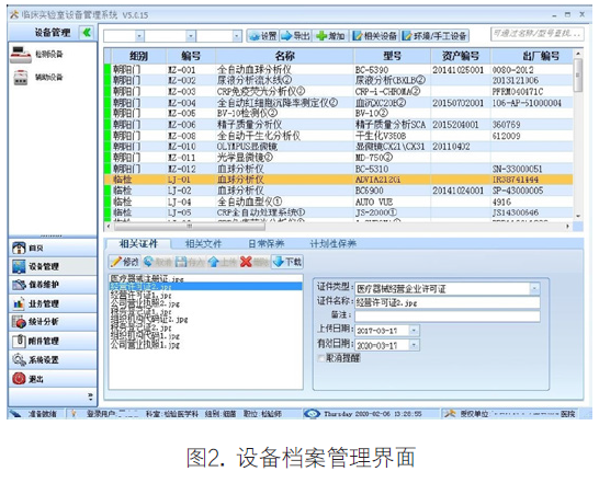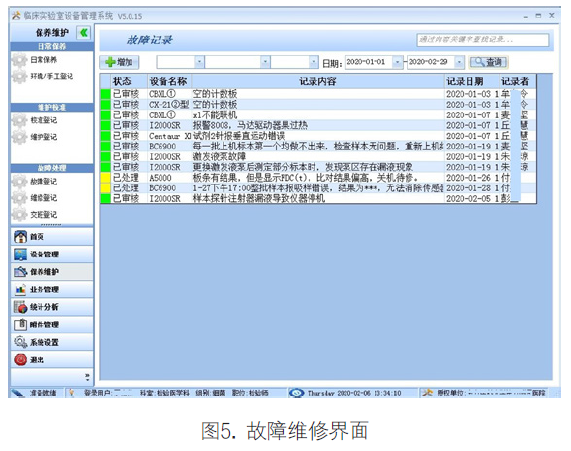 曾方银 南方医科大学第五附属医院副院长兼检验科学术带头人 医学博士、主任技师、博士研究生导师。1990年本科毕业于第三军医大学检验系,1990年加入南方医院检验科,历任检验技师、生化组长、科室副主任;2014年调任南方医科大学第五附属医院检验医学科主任,现兼任中华医学会广东省检验分会副主任委员、广东省肝脏病学会检验分会副主任委员、广东省医疗行业协会检验分会副主任委员、中国合格评审委员会CNAS医学实验室认可评审员等。《循证医学》、《国际检验医学杂志》编委,多省科技评审专家;主编/副主编专著3部,副主编/参编全国统编教材8部,获教学成果奖3项,发表论文90余篇。主持国家自然科学基金、广东省自然科学基金、广东省科技计划、广州市科技计划等课题8项。 一 模块设计 (一)基本原理:结合ISO15189《医学实验室质量和能力专用要求》等对实验室设备规范化管理的要求,重点从保证质量、安全、效率的角度出发,梳理临床实验室日常工作中的设备管理流程,综合运用计算机技术、物联网技术(IOT)、无线RFID技术和传感器技术,开发临床实验室设备智能管理系统。 (二)模块搭建:临床实验室设备智能管理系统主要包括但不局限于以下模块: 1. 设备资产档案模块:用于设备档案的管理,包括设备基本信息、资产情况和三证文件(主要指医疗器械注册证、医疗器械生产许可证、医疗器械经营许可证)等内容[4],方便使用人员快速全面了解设备情况,对设备的使用效期和三证效期进行智能提示,及时进行更换。同时生成二维码设备卡贴在设备表面,二维码相较于原先的一维码可以储存更多的信息,包括设备基本信息和数据链接。使用人员可利用手机、平板等终端扫描二维码查看设备档案资料及故障报修等;维修人员除了查看基本信息外还可记录故障处理情况等,相较于在计算机上查看更加方便快捷[5]。根据不同人员的级别、岗位、考核情况设置对应的权限,包括档案管理权限、日常使用登记权限、统计分析权限、后台管理权限等,权责清晰,方便管理。 2. 使用记录管理模块:用于设备日常使用中的记录,包括维护保养、故障维修、定期校准和计量管理等记录。维护保养用于设备日常使用中的保养登记,对于未按要求进行保养的设备进行提醒,及时进行相应的维护保养,有利于保障设备性能和延长寿命。当设备发生故障时用于故障登记,同时给实验室管理层及维修人员发送报修通知,当故障维修完毕时发送故障处理完毕的通知。对故障设备未做记录者进行报警提示,敦促工作人员及时处理。对于可能影响检验质量的维护保养例如更换灯泡、维护液路等需要进行质量监控,可从LIS中获取质控结果或上传相关的质控记录[6]。 定期校准用于设备的周期性校准计划或维护保养计划,当临近设置的维护校准日期时自动提示,提醒工作人员及时对设备进行校准维护。对于精确度高的或需要强制检定的计量设备如血球计数器、分光光度计等,按管理要求需要定期进行溯源校准;当临近设备的溯源校准日期时自动提示,并进行计量检定的记录管理[7]。 3. 全生命周期管理模块:包括设备的采购、验收、调拨、租赁、使用、不良事件、报废等记录,实现设备全生命周期管理[8],同时与医院运营管理系统(Hospital Resource Planning,HRP)实现业务数据对接[9]。 4. 统计分析模块:用于设备的效益、折旧、使用报告分析。与HRP、LIS、临床实验室试剂管理系统(Laboratory Reagent Management System,LRMS)对接,可实时快捷统计分析,方便清晰了解设备整体运行情况,提高设备的使用效率,降低管理成本。 5. 文档模块:用于管理设备程序文件、用户手册、维修手册、相关证件等资料。将所有材料文件统一进行目录化管理,方便工作人员快速查阅。文件信息包括文档、上传者、上传日期、废止日期等。 6. 无线温湿度智能监控模块:主要由传感器、接收模块(包括终端模块、协调器模块)等组成。传感器也称探头,包括温度传感器和湿度传感器,分别用于测量接触点的温度和湿度。接收模块用于接收各无线温度传感器、湿度传感器测量的数据并将数据上传至计算机中,响应管理软件命令,一旦触发所设阈值则进行报警提示,提醒工作人员进行处理,保证设备处于正常运行环境[10]。 7. RFID模块:主要由电子标签、读写器、天线、报警器等组成。电子标签作为信息的载体,存储被识别物体的相关信息,一般附于被识别物体表面或内部,由耦合元件、芯片等组成,具有唯一的电子编码。读写器又称阅读器,是利用射频技术对电子标签进行读写的设备,达到从电子标签获取或向电子标签写入信息的目的,可分为手持式或固定式。天线用于电子标签和读写器间传递信号。报警器用于当被识别物体未经授权离开监控区域时发出声音报警。利用RFID无线射频技术和物联网技术,实现设备的联网管理,可在系统上快速识别,进行自动盘点;对于便携式的小型设备可追踪定位,方便查找;同时对未经授权离开实验室或相应区域的设备进行报警提示,避免设备丢失。 二 功能应用 南方医科大学第五附属医院检验科过去的设备管理模式为手工纸质登记模式,导至记录不完整、效率低下、管理混乱。比如:设备的保养登记,需每月为每台设备都打印登记表,然后每天进行手工填写,浪费纸张的同时增加工作负担;每次实验室检查评审时,由于纸