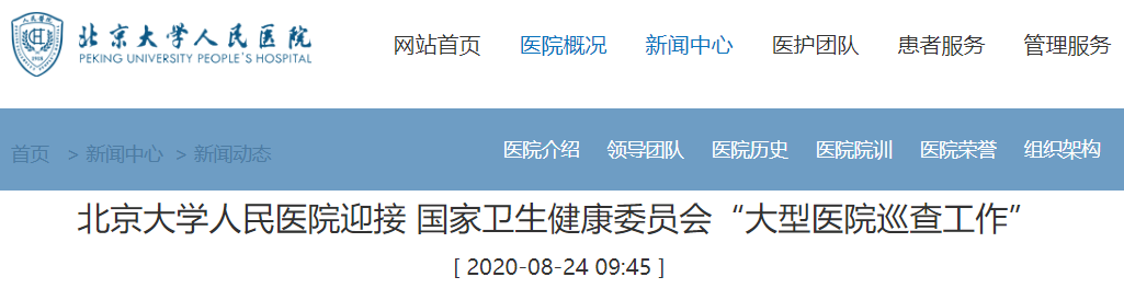 8月24日,北京大学人民医院官网消息显示,8月16日上午,北京大学人民医院作为接受巡查的医院,与国家卫生健康委员会医政医管局连线进行“大型医院巡查工作”启动视频会议,国家卫生健康委员会医政医管局监察专员焦雅辉等出席会议。