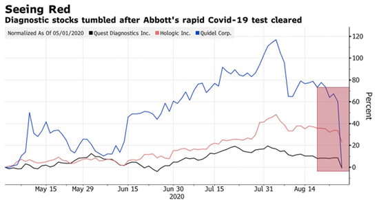 美国东部时间8月27日,特朗普政府将向雅培公司购买了1.5亿次的新冠快速检测设备,采购共计7.5亿美元(约50亿人民币),该公司股价周四大幅上涨。特朗普总统在周四的共和党全国代表大会上讲话上宣布了这项协议。 白宫通讯主任法拉赫(Alyssa Farah)在给媒体的一份声明中说,“在特朗普总统的领导下,美国在检测方面处于世界领先地位,这是一项重大发展,将有助于我们的国家保持开放,让美国人重返工作岗位,让孩子们重返学校。特朗普政府很自豪能与雅培公司合作,使这笔收购成为可能,以帮助美国人民。” 雅培公司在周三宣布,其公司一种新型新冠便携式抗原检测技术在美国获得美国食品和药物管理局(FDA)的上市许可, 15分钟内就能检测出结果,售价5美元。雅培公司高管对媒体表示,这种便携式检测只有一张信用卡那么大,不需要额外的操作设备,与传统的实验室检测相比,使用侵入性更小的鼻腔拭子即可进行。雅培预计9月将出货数千万次,从10月初开始每月出货5000万次。 雅培定价仅5美元的15分钟新冠病毒快速检测产品在美国获批使用后,其今年年内计划产量几乎已被美国政府全部订购。 美国卫生与公众服务部(Department of health and Human Services)负责卫生事务的助理部长布雷特-吉洛尔(Brett Giroir)表示,这项测试是“游戏规则改变者”。 (其他检测公司股价分别出现不同下跌, 来源:彭博) 雅培公司表示,这种名为“BinaxNOW COVID-19 Ag Card”的检测可用于检查参加大型集会的人是否患有新冠感染,对那些返回学校或工作场所的人也将适用,并可能有助于美国的重新开放。另外,雅培还开发了一款名为Navica的可下载应用程序,参加过测试的人可以在进入场馆前展示这款应用程序,以证明他们没有感染新冠病毒。 这种抗原测试用的是鼻拭子,使用的技术与流感测试相同。抗原检测比分子诊断检测更便宜、更快,但在某种程度上与实验室诊断检测相比,确认病毒阳性病例准确率却略逊一筹。 美国食品和药物管理局在其紧急使用授权计划下批准了该产品。自今年3月以来,该公司获得了美国批准进行另外五项冠状病毒的检测,其中一项名为the ID Now的检测可以在几分钟内得出结果,并在白宫使用。 新冠跟踪第三方机Covid Tracking Project的数据显示,目前全美每天大约进行80万次测试,即每月2400万次。雅培公司在美国新建了两家生产BinaxNOW的工厂,使其每月可进行的测试数量增加了一倍以上,达到5000万次。 参考资料:新浪财经、中金网等 |