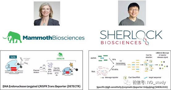Q: CRISPR/Cas系统目前在分子诊断领域实现了哪些应用? 加州大学(伯克利)的Jennifer Doudna博士创立Mammoth Biosciences,麻省理工的张锋博士创立Sherlock Biosciences,专注于开发以CRISPR/Cas系统为基础的分子诊断技术。 一览:Doudna博士创立Mammoth Biosciences和张锋博士创立Sherlock Biosciences 简单的说,两个团队最初都将CRISPR/Cas系统同RPA方式进行结合,不同点在于: