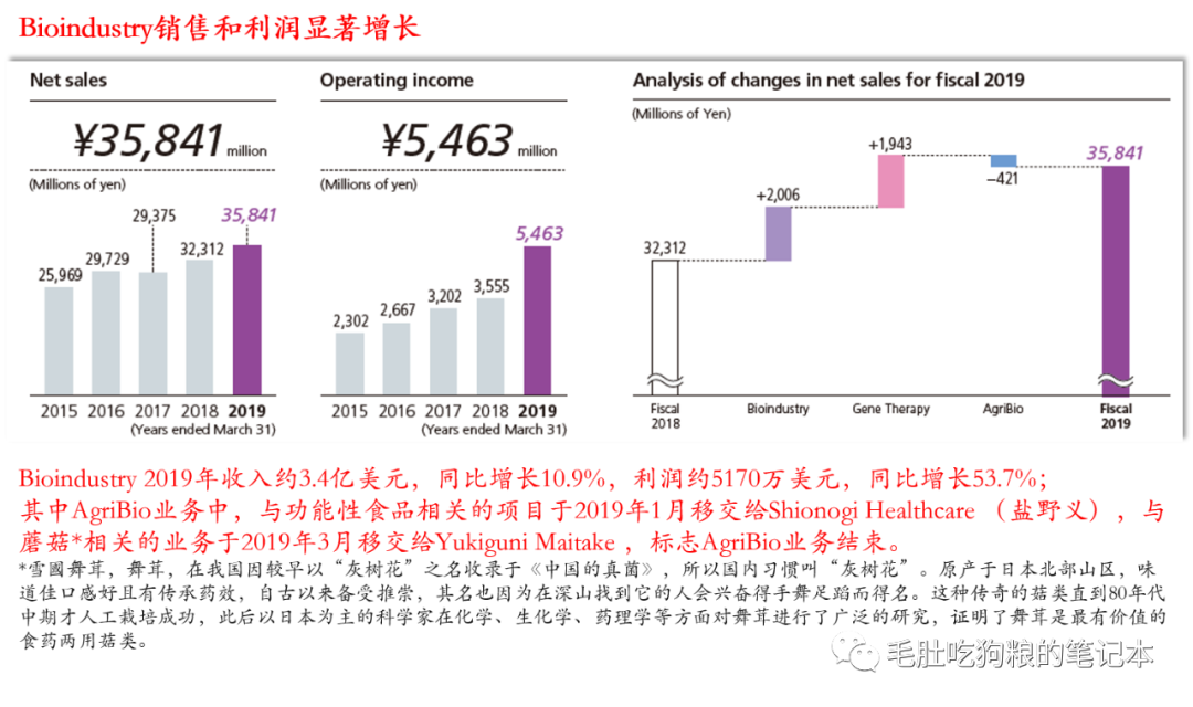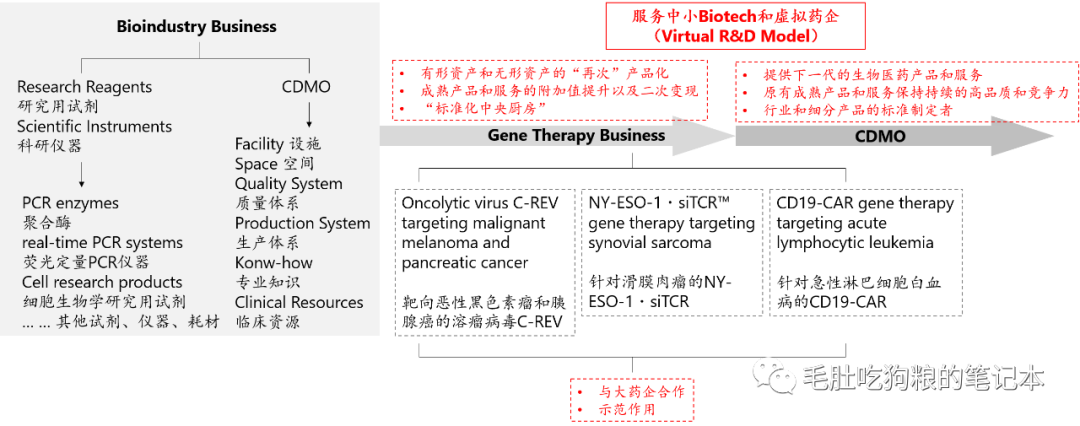 “百年老店”系列之:TaKaRa简介 Takara是一家总部位于日本京都的生物医药企业,起源于1841年,正式创立于1925年。该公司主要从事酒精饮料、调味品、研究试剂、科学仪器、保健食品以及基因和细胞治疗产品(CDMO)的研发和销售。 母公司Takara Holdings在东京证券交易所上市,目前市值1934亿日元,约18.3亿美元;员工4500人,其中海外2200人。 对于生命科学工作者来说,Takara应该不陌生,其提供的限制性内切酶和聚合酶是实验室中常用试剂。Takara也是世界上首批提供生命科学科研用试剂以及商用PCR仪器和试剂的企业。 企业 Philosophy:We will create new value to make people smile. 依照惯例,先上才艺(diachrony): 从以上将近两百年的成长轨迹中可以看出,Takara是起源于传统发酵技术,壮大于酒类业务,发展于生物技术产品,目前扎根于新兴CDMO市场。 Takara目前的业务构成如下,总体分为4个板块。第一是针对日本国内市场的酒精饮料、调味料和酒精的制造和销售;第二是针对日本以外地区的酒类等业务的管理和销售;第三是生物医学类业务,包括研究用试剂、科学仪器等的生产、销售;CDMO;基因和细胞治疗的商业化;第四是针对日本国内的其他业务,包括印刷等。 根据Takara 2019年年报,企业的营收如下: 四个业务板块的营收和贡献情况如下: 不难看出Biotech业务增长强劲,具体数据如下:临床基因与细胞治疗进展: 2008年,Takara Bio启动了日本第一个基因治疗的临床试验,之后还推进了多个基因治疗项目。目前正在进行针对黑色素瘤和胰腺癌的溶瘤病毒Canerpaturev (C-REV)的临床试验,并于2019年3月提交了C-REV作为黑色素瘤治疗药品的生产和销售审批申请。 持续凝练核心业务,适配最佳变现方向,保持快速增长态势 |