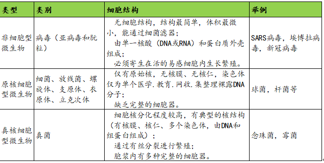 「重要结论」 1. 新发感染性疾病的不断出现,病原微生物诊断成为行业风口 2002年传染性非典型肺炎在我国的出现及迅速蔓延,人禽流感、手足口病、甲型H1N1流感等的横行肆虐,2020年的新型冠状病毒全球大流行。这些疾病严重威胁着人类的健康和生命,对临床上病原微生物诊断的准确性和时效性提出的更高的要求。 2. 病原微生物诊断技术不断发展,质谱、PCR、测序等技术促进行业发展 传统微生物检测方法在操作简便性、检测时间、可检测的微生物数量、灵敏度等方面存在很多不足,据相关文献报道,受限于传统诊断技术和方法,30%-50%的肺炎、60%-80%的脑炎脑膜炎、超40%的败血症等疾病还不能诊断出致病原因。而二代测序、数字PCR、单分子测序、分子诊断POCT、质谱等新技术的出现,给临床病原微生物的诊断提供了新的解决方案。 3. 政策推动行业发展,疫情影响下微生物检测迎来巨大投资机会 我国自 2012 年以来,国家出台众多政策限制对抗生素的使用,微生物检测的重要性凸显。中国临床微生物相关科室建设和人员的配置正在逐步完善,诊断量的大幅提升;新冠影响下,从政府端、医院临床端、产业端到普通百姓,对于病原微生物感染的认知和重视都会达到前所未有的高度。 我国病原微生物诊断领域没有绝对的龙头,上市公司安图生物、万孚生物、东方生物、万泰生物、达安基因、硕世生物等,或是只有部分微生物诊断业务,或是只有新冠检测产品业务,市场格局比较分散,对于一些在某类病原微生物诊断细分领域具备领先优势、或是微生物诊断产品线和技术储备丰富、或是在新技术平台上占据技术领先优势的项目,将成为病原微生物诊断赛道的优质投资标的。 01 — 病原微生物概述 (一)微生物基本概念 微生物是一类肉眼看不见,有一定形态结构,能在适宜环境中生长繁殖的细小生物。微生物特点是个体微小、结构简单,代谢旺盛、繁殖迅速,适应力强、容易变异,种类繁多、分布广泛。 病原微生物是指能引起人类、动物、植物疾病的,具有致病性的微生物,称为致病微生物或病原微生物。很少的一部分微生物具有致病性。 根据病原微生物的组成及结构,可将其分为三大类:非细胞型微生物、原核细胞型微生物和真核细胞型微生物。