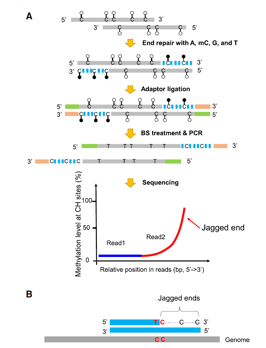 血浆无细胞DNA(cfDNA)已广泛用于无创产前检查和癌症液体活检研究。血浆中cfDNA片段的物理特征(例如片段大小和末端)引起了人们的极大兴趣,随即cfDNA片段组学领域兴起。在血浆DNA片段组学研究中,关于双链血浆cfDNA分子是否可能带有单链末端,仍未得到充分研究。 近日,香港中文大学卢煜明教授研究团队开发了基于甲基化的方法以分析cfDNA片段的“jagged ends(锯齿末端)”。结果显示,大多数(87.8%)cfDNA分子存在锯齿末端。胎儿DNA分子的锯齿末端平均长度比母体的平均长度更长,且胎儿DNA的锯齿末端整体上更紧密。在肝细胞癌患者中,与非肿瘤DNA相比,肿瘤来源的DNA分子呈现出更多的锯齿末端。此外,锯齿程度随血浆DNA片段大小而变化,且与核小体模式有关。该研究成果已在Genome Research发表,文章题为“Detection and characterization of jagged ends of double-stranded DNA in plasma”。卢煜明教授 液体活检研究领域先驱卢煜明教授领导了该研究,其团队已开发了多种方法来分析cfDNA。此前发表的文章详细介绍了使用甲基化分析方法跟踪cfDNA,可进行癌症组织溯源和非侵入性产前诊断。此外,其团队研究还发现,特异性cfDNA末端的基因组坐标可被用作癌症生物标志物,寻找血液ctDNA的癌症信号。在这项最新研究中,研究团队分析了血浆cfDNA分子是否含有锯齿末端。锯齿末端在此前的研究中很少被发现,因为通常在大规模平行测序的文库构建之前,DNA末端修复过程会将锯齿末端转变为平末端。此外,研究团队还开发了相应的分析方法,称为“Jag-seq”(jagged end analysis by sequencing),以分析锯齿末端的存在是否与各cfDNA分子的起源组织有关。Jag-seq方法可进行DNA末端修复,以在原始序列和锯齿状末端之间引入差异甲基化信号,具体为在DNA末端修复过程中使用的是未甲基化的还是甲基化的胞嘧啶(C)。图:“未甲基化”Jag-seq方法检测cfDNA锯齿末端。第一种方法被称为“未甲基化”Jag-seq方法。研究人员利用CpG位点的甲基化水平鉴定了cfDNA锯齿末端。通过使用Taq聚合酶和带有未甲基化C的dNTPs延伸DNA链的锯齿末端构建平末端。随后,利用亚硫酸氢盐处理DNA,将所有未甲基化的C转化为U,从而使甲基化C保持不变。如果cfDNA分子包含锯齿末端,则靠近末端的CpG位点甲基化水平将低于远离末端的甲基化水平。图:“甲基化”Jag-seq方法检测cfDNA锯齿末端。由于CpG位点在人类cfDNA中并不常见,研究团队开发了第二种甲基化Jag-seq方法,该方法用甲基化Cs填充带有5'突出末端的DNA分子。其产生的平末端经过亚硫酸氢盐处理,甲基化水平相对以前具有锯齿末端的cfDNA片段而言更高。卢煜明教授表示:“我们可以检测锯齿末端的起始位置,并观察未甲基化的天然C,然后掺入下一个人工甲基化的C。只要看到未甲基化C及其旁边有一个甲基化C,那就是锯齿末端。从血液样本采集到亚硫酸氢盐测序进行数据分析,该流程可以在大约三天内产生结果。”研究中,卢煜明团队从30名孕妇的队列以及另一个队列中采集血液样本,包括34名肝细胞癌患者、17名慢性乙型肝炎病毒患者和8名健康对照者。从样本中扩增并提取血浆后,研究人员对这两个队列进行了Jag-seq分析。图:胎儿cfDNA的锯齿末端平均长度比母体的锯齿末端平均长度更长。在孕妇队列中,研究人员使用甲基化Jag-seq方法分析了孕妇cfDNA的锯齿末端差异。结果显示,胎儿cfDNA的锯齿末端平均长度比母体的锯齿末端平均长度更长,而胎儿DNA的锯齿末端整体上更紧密。图:与非肿瘤cfDNA相比,肿瘤来源的cfDNA呈现出更多的锯齿末端。在第二队列研究中,研究人员将未甲基化Jag-seq方法应用于肝细胞癌患者的血液样本,发现与非肿瘤cfDNA相比,肿瘤来源的cfDNA呈现出更多的锯齿末端,表明cfDNA锯齿末端具有用于检测肝细胞癌患者的诊断潜力。此外,研究发现,锯齿末端的大小取决于cfDNA片段的大小,且似乎与核小体模式有关。目前该方法的工作曲线下面积为0.87,卢煜明教授指出,该方法可能会与其他方法结合使用,以实现更高的灵敏度和特异性。为了确定cfDNA片段锯齿末端的生物学意义,研究团队分析了锯齿末端是否可以作为小鼠中DNASE1和DNASE1L3活性的标记。研究发现,敲除DNASE1可抑制小鼠血液样本中cfDNA锯齿末端的数量,敲除DNASE1L3可增加锯齿末端的数量。与背景DNA相比,胎儿cfDNA和肿瘤cfDNA中也出现了更多的锯齿末端。因此,研究人员认为核酸酶可能在产生锯齿末端中起作用。卢煜明教授认为,未甲基化Jag-seq方法可用于分析许多现有的亚硫酸氢盐测序数据集,但甲基化Jag-seq方法可以更精确地定位锯齿末端的基因组特定位置。“也就是说,这种锯齿末端分析可以帮助检测任何分析目标的踪迹,无论是来自胎盘还是癌症组织。”研究团队计划在将来增加癌症患者和孕妇的样本量,有助于更好地了解锯齿末端与相关疾病之间的关系,探讨不同临床情况下cfDNA片段锯齿末端的异常形态。加州大学洛杉矶分校病理学和实验室医学系的研究员Jasmine Zhou认为,这项研究的数据表明,锯齿末端特征可能比cfDNA片段大小更能预测癌症。同时,她很期待看到该团队能否使用锯齿末端来推断体内癌症来源,以及如何将锯齿末端与其他标记(例如甲基化)更好地结合起来,以提高Jag-seq方法的诊断能力。cfDNA锯齿末端代表了越来越多的片段组学标记物的新成员,该最新发现也凸显了理解cfDNA片段化特征的重要性。目前,卢煜明团队已申请了与
