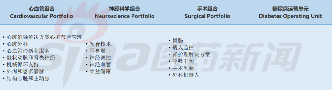Operating Units部门,将拆分成3个子部门(Portfolio)进行运营,由Mike Coyle、Brett Wall、Bob Whitel 来领导,他们目前分别任心血管全球负责人、恢复性疗法全球负责人、微创外科全球负责人。