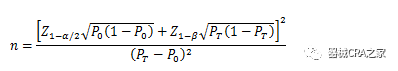 σ为对照组预期标准差;为预期的两组均数之差的绝对值, = ;∆为非劣效界值,取负值。 使用该公式计算样本量为Z值计算的结果,小样本时宜使用t值迭代,或总例数增加2—3例。 3.2.2、单组目标值试验的样本量估算 以下公式中,n为试验组样本量;Z1-α/2、Z1-β为标准正态分布的分数位,当α=0.05时,Z1-α/2=1.96,当β=0.2时,Z1-β=0.842。 当主要评价指标为事件发生率,统计发生率的研究周期相同,且发生率不接近于0%或100%时,其样本量估算公式为:
