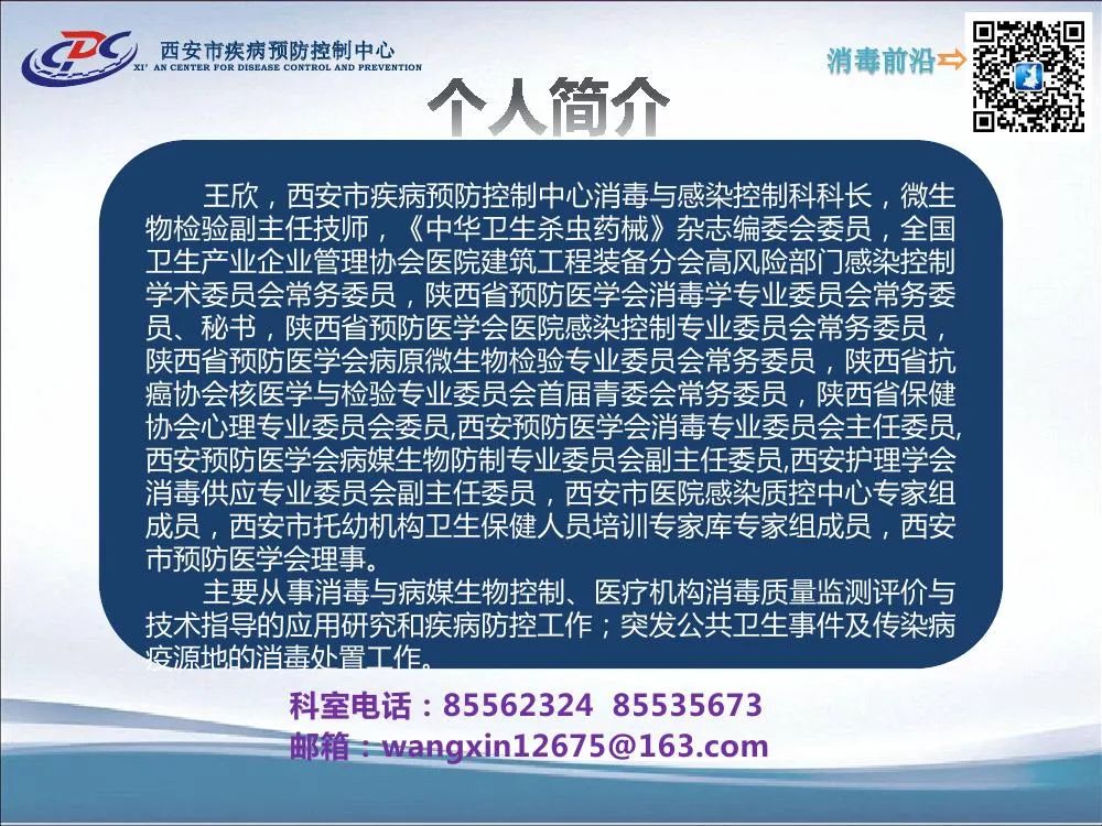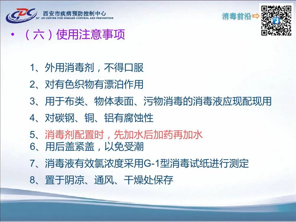 消毒剂的使用一直是感控工作所关注的重要内容,消毒剂的正确选择、配置及使用等因素关乎消毒效果,但我们好像从来没有系统的学习过关于常用消毒剂的相关知识。今天分享由西安市疾控中心王欣老师关于常用消毒剂的储存配置及使用视频讲座,希望对大家关于消毒剂的规范使用能有所参考: