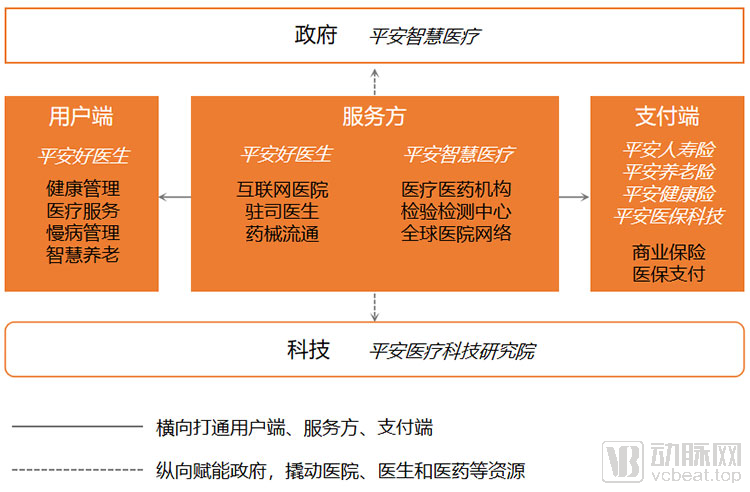 平安并不是心血来潮想要进入医疗健康领域。 面对未来十年16万亿的中国医疗市场规模,资源错配导至的严重供给矛盾,和商保在医疗支付中的巨大提升空间,都给了平安足够的理由进入。 9月22日,中国平安保险(集团)股份有限公司(以下简称“平安集团”)在深圳举行的投资者开放日活动中,联席首席执行官陈心颖首次全面披露了医疗生态圈战略,并宣布平安已成为领先的医疗健康企业。 医疗生态圈战略共涉及平安好医生、平安智慧医疗等12个子成员单位,牢牢抓住政府、用户、服务方、支付方、科技这5大抓手,为各方赋能。耗时23年最终正式成型,被定位为平安集团的长期核心战略之一。 具体来看,平安智慧医疗服务政府端,平安好医生占据用户及线上医疗服务端、平安智慧医疗占据线下医疗服务端,平安人寿、平安养老险、平安医保科技、平安健康险服务支付端,平安医疗科技研究院等提供技术研究支撑。这些公司的业务之间形成有效互补,并形成合纵连横的协同矩阵。 从老牌险企到综合金融服务集团,再到如今的科技型个人金融生活服务集团,平安在某个阶段的核心标签虽然只有一个,但细分标签却可以更多,“医疗健康企业”正式成为其中之一。 高度协同下的降本增效 科技赋能金融,科技赋能生态,生态反哺金融,这句话正在成真。 平安集团在2019年年报中明确,已更加清晰地将“金融+科技”定义为核心主业。围绕核心主业,平安集团构建了五大生态圈,即:金融服务、医疗健康、汽车服务、房产服务、智慧城市。生态圈建设的终极目的,是能反哺主业。 平安集团生态圈组成,图片来源:平安集团2019年年报 根据开放日的披露数据,平安集团每年15%到20%新增金融客户来自于医疗生态圈;使用医疗生态圈服务的金融客户客均合同数为3.1个,不使用的为2.0个;使用医疗生态圈服务的金融客户AUM约1万元,不使用的为5600元;同时,约60%的金融客户需要医疗健康产品或服务。 这也表明,医疗生态圈不仅可以在16万亿的医疗健康市场中占据一席之地,还能对内形成流量、产品和服务等的巨大协同作用。医疗生态圈对于主业的反哺作用开始显现。 数据背后是冰山下的真实逻辑。保险市场竞争日渐加剧,客户对保险产品与服务的要求越来越高。尤其是新冠肺炎疫情之后,人们加强了保障意识、健康意识,但对医疗健康服务也有更高的期望值。 然而,传统的保险或金融产品在服务模式、销售渠道方面,存在明显短板。保险公司通过第三方合作、局部自建等方式向客户提供医疗健康服务时,要么很难把控第三方的服务质量与效率,要么可利用的资源有限。传统营销渠道获客成本高,若不能充分挖掘客户需求,并提供多元化产品去满足需求,整体运营成本也被抬高。 医疗生态圈对平安集团的协同,除了上述直观的数据体现之外,自建互联网医疗体系还能够广泛、高效地服务客户,并且集团对服务内容有充分的把控;而增加客均合同数,推动个人客户价值稳定增长,也使集团整体的运营成本降低。 因此,医疗生态圈乃至五大生态圈与平安集团的高度协同,可以直接理解以市场需求为导向进行的降本增效。 构建医疗纵横魔方,推高保险竞争壁垒 如果说医疗生态圈对内产生了降本增效的价值,那么放眼到行业来看,则是为平安集团构建了差异化的竞争力。 从保险市场来看,随着保险市场对外开放力度加大,外资保险机构陆续进入国内市场,来自银保监会的数据显示,外资保险公司数量已占行业总数约27%。此外,近年来还新成立了一批发展速度快、保费规模较大的保险公司,以及拥有银行背景或互联网背景的保险公司。 多元化格局意味着更激烈的竞争,平安集团作为头部企业虽然已有体量上的天然优势,但仍需着眼更广泛和长远的布局。医疗生态圈则是平安集团打通医疗健康产业全局资源的重要方式。 平安集团利用医疗生态圈打通医疗健康全局资源 横向维度,打通用户端、服务方和支付端;即:抓住用户流量,决策医疗健康行为;赋能服务方,获取产品服务利润;从支付端长臂管理机构影响用户。 具体来看,在用户端,平安好医生已积累起3.46亿用户,日均问诊量达83.1万;在服务方,同样是平安好医生,已连接和赋能了11万家线下药店,建立起庞大的线下服务网络;在支付端,平安人寿保险已有6.5千万的人寿保险客户,平安医保科技的智慧医保服务已覆盖200个城市。 纵向维度,医疗生态圈赋能政府,撬动医院、医生和医药等核心资源;通过科技赋能生态圈内的各成员,建立竞争壁垒。 具体来看,平安智慧医疗为监管机构和医疗生态提供端到端解决方案,依托“四轮”驱动赋能政府端,纵向打通服务。 “四轮”即管机构、管医生、管疾病、管药品。管机构是赋能卫健委进行智慧化管理;管医生是依托智慧医院核心系统,助力医院全面提升运营;管疾病是赋能公共卫生系统以应对流行病突发事件,赋能慢病管理以提升全民健康质量;管药品是通过智慧解决方案助力药物研发与管理。 目前,平安智慧医疗连接和赋能了2万家机构,且拥有1000家以上的全球医院合作网络。 医疗生态圈不仅打通各方资源,还带来了更多场景。比如,医疗租赁公司过去几年积累了3400多家医院,以公立医院为主;这些资源当前的需求是互联网化,建互联网医院,平安好医生就能帮他们实现。 所以,平安集团能够利用医疗生态圈积蓄更广的能力。相