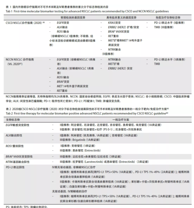 二代基因测序(next generation sequencing, NGS)又称为高通量测序,该技术能够同时对上百万甚至数十亿个DNA进行分析,实现了高通量测序的目标。目前国外已发表了多个NGS检测技术指南,包括《二代测序诊断指南》、《基于二代测序的肿瘤panels验证指南》等。我国近年来也发表了多个NGS专家共识,包括《临床分子病理实验室二代基因测序检测专家共识》、《临床基因检测报告规范与基因检测行业共识探讨》、《二代测序技术在肿瘤精准医学诊断中的应用专家共识》、《二代测序技术在血液肿瘤中的应用中国专家共识(2018年版)》等。 然而,现有指南通常侧重检验科室的技术参数标准,尚缺乏可指导NGS检测在实体瘤临床诊疗路径中应用的指南或共识。我国非小细胞肺癌(NSCLC)患者数量庞大,精准治疗药物的可及性高,全面而准确的肿瘤基因诊断结果已经成为肺癌医师临床诊疗的刚需。2020年9月,《二代测序技术在NSCLC中的临床应用中国专家共识(2020版)》于中国肺癌杂志正式发布,旨在为我国NSCLC临床诊疗规范使用NGS这一新型基因检测技术提供指引。 (来源:中国肺癌杂志,下同) 常规推荐进行NGS检测的NSCLC患者 共识1 推荐所有病理诊断为肺腺癌、含有腺癌成分的肺癌以及不能分型的晚期新发或术后复发的NSCLC患者常规进行基因检测。【I级推荐】 对经小标本活检诊断为含有腺癌成分或具有腺癌分化的混合型鳞癌,以及年轻或不吸烟/少吸烟肺鳞癌患者,也推荐进行基因检测。【II级推荐】 NGS和传统检测方法的比较 共识2 针对敏感型突变发生率高的NSCLC患者(见“共识1”),常规基因检测结果为阴性时,建议使用中国国家药品监督管理局(National Medical Products Administration, NMPA)或美国食品药品监督管理局(Food and Drug Administration, FDA)批准的NGS产品进行复检。【III级推荐】 晚期新发或术后复发NSCLC患者首次进行基因检测的目标范围推荐 共识3 针对晚期新发或术后复发的NSCLC患者,首次检测建议采用NMPA批准的检测产品,检测至少包括NSCLC常见驱动基因: EGFR突变(应涵盖18号、19号、20号、21号外显子),以及ALK融合、ROS1融合。【I级推荐】 NSCLC少见驱动基因 共识4 针对晚期新发或术后复发的NSCLC患者,结合患者实际临床情况,如需获得更多的潜在靶点信息,首次检测建议采用NMPA或FDA批准的检测产品,检测包括BRAF V600E、KRAS(如G12C等)、NTRK1/2/3融合、MET 14号外显子跳跃突变和MET扩增、ERBB2 20号外显子插入、RET融合等少见驱动基因变异。【II级推荐】 NSCLC常见/少见驱动基因的罕见变异形式 共识5 共识3和共识4中基因检测均为阴性的NSCLC患者再次检测时,建议采用NMPA或FDA批准的NGS产品,检测包含EGFR罕见变异形式(包括激酶区重复和融合)、BRAF罕见变异形式(包括激酶区重复和融合)、MET罕见变异形式(包括激酶区重复和融合)、ERBB2融合等罕见变异形式。【III级推荐】 免疫治疗疗效及预后生物标志物 共识6 结合患者实际临床情况,如需获取免疫治疗相关的分子标志物信息,晚期新发或术后复发的NSCLC患者,建议采用NMPA或FDA批准的NGS产品进行检测,检测包含MSI、tTMB、免疫治疗正负向相关基因和免疫治疗超进展相关基因在内的免疫治疗相关分子标志物。【III级推荐】 NGS检测平台的选择 共识7 在条件允许的情况下,如患者有意愿获取最为全面的基因变异信息,晚期新发或术后复发的NSCLC患者,首次基因检测可以自行选择NMPA或FDA批准的CGP NGS检测产品,在全面了解肿瘤基因组信息的基础上制订一线治疗方案。【II级推荐】 NGS液体活检可以作为组织检测的重要补充 共识8 晚期新发或术后复发的NSCLC患者,首次基因检测组织样本不足或组织检测失败时,经NMPA或FDA批准的液体活检检测产品可作为辅助或补充。【II级推荐】 对于脑转移患者(包含脑膜转移),有证据表明脑脊液ctDNA体现出比血液ctDNA更好的检测性能,在条件允许的情况下,优先使用脑脊液进行液体活检。【III级推荐】 有证据表明,胸腔积液ctDNA体现出比血液ctDNA更好的检测性能,在条件允许的情况下,在胸腔积液沉渣中病理分析检出肿瘤细胞的前提下,优先使用胸腔积液进行液体活检。【III级推荐】 靶向治疗耐药NSCLC患者进行基因检测 共识9 对于靶向治疗耐药后的患者,为了更好地指导后续治疗方案的选择,建议使用NMPA或FDA批准的CGPNGS检测产品再次进行检测。【II级推荐】 共识10 靶向治疗耐药后优先选择再次活检,如无法再次进行组织活检或活检组织样本不足时,可使用经NMPA或FDA批准的CGP NGS液体活检检测产品进行补充检测。【II级推荐】 NGS检测中标本类型和检测流程的规范 共识11 NSCLC的NGS检测样本的采集处理和保存应符合规范要求。未接受过靶向/免疫药物治疗的患者,NGS检测应首选经病理评估的组织样本。接受过靶向/免疫药物治疗的患者,应尽可能使用治疗后的样本。【I级推荐】 共识12 NSCLC的NGS检测流程应符合规范要求,配备完善的标准操作流程和独立的质量控制程序。【I级推荐】 NGS检测报告的临床解读 共识13 二代测序技术为NSCLC患者带来了更多更全面的基因突变信息,倡导各单位组建NSCLC-MTB,以正确解读基因检测的结果,制定个体化临床治疗决策。【II级推荐】 小结 二代测序技术的全面应用,将为NSCLC患者个体化临床诊治奠定基础。未来可以通过对患者临床诊疗信息、基因检测结果、后续治疗方案的全程管理,建立NSCLC患者个体化精准治疗平