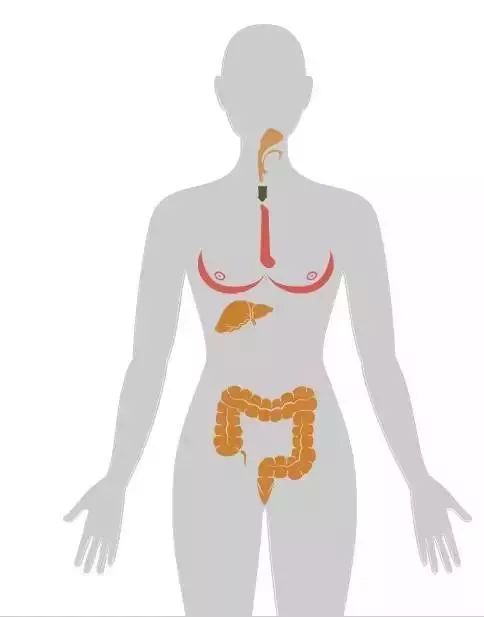 全球新发癌症发病率最高的依次为:肺癌(11.6%)、乳腺癌(11.6%)、结肠直肠癌(10.2%)、前列腺癌(7.1%)、胃癌(5.7%); 全球死亡率最高的癌症依次为:肺癌(18.4%)、结肠直肠癌(9.2%)、胃癌(8.2%)、肝癌(8.2%)、乳腺癌(6.6%)。 男性中,肺癌发病率(14.5%)和死亡率(22%)最高。男性癌症发病率其次分别是前列腺癌(13.5%)、结肠直肠癌(10.9%)、胃癌(7.2%)、肝癌(6.3%),死亡率其次则分别是肝癌(10.2%)、胃癌(9.5%)、结肠直肠癌(9%)、前列腺癌(6.7%)。 女性中,乳腺癌发病率(24.2%)和死亡率(15%)最高。女性癌症发病率其次分别是结肠直肠癌(9.4%)、肺癌(8.4%)、宫颈癌(6.6%)、甲状腺癌(5.1%),死亡率其次分别是肺癌(13.8%)、结肠直肠癌(9.5%)、宫颈癌(7.5%)、胃癌(6.5%)。 1800万新增癌症病例及960万癌症死亡病例中,我国新增病例数占380.4万例、死亡病例数占229.6万例。这一组数据也就意味着: 全球每新增100个癌症患者中,中国人就占了21个。也就是说,我国每天有超过1万人确诊癌症,平均每分钟有7个人得癌症。 全球每死亡100个癌症患者中,中国人占将近24个。平均每天都有6000多人死于癌症,每分钟就有将近5人死于癌症。 相对于全球,我国结直肠癌、肝癌、食管癌、胃癌等消化系统癌症仍占很大比例。 癌症的形成犹如冰冻三尺,非一日之寒,需要一个很漫长的过程。 在临床期前,癌症有一个漫长的潜伏期。从正常细胞演变成癌细胞,发生异常增生、癌前病变(各类炎症),再到形成可见的癌症(临床期)通过需要10-20年。 当患者处于癌症潜伏期,只要有意识地改善生活习惯、饮食结构、运动习惯,增强抗癌免疫力,便可逆转或阻止癌变的发生。 90%以上的癌症在潜伏期可能没有明显症状,但当出现明显症状就医时,常常就已经到了中晚期,而这也是导至我国癌症死亡率高于全球平均水平17%的重要原因之一! 1.我国常规体检缺乏癌症早期筛查项目。例如,筛查结直肠癌的肠镜检测并不在公务员体检项目之列。而直肠镜筛查在美国已经非常普及,这也是美国结直肠癌患者五年生存率70%远远高于我国30%的最主要原因。 2.对于癌症早期筛查的认知不足以及怕麻烦的心理也使得普通民众疏于进行相关检查,错过了治疗癌症的最佳时机。 早期宫颈癌、肺癌的治愈率为100%! 早期乳腺癌及直肠癌的治愈率为90%! 早期胃癌的治愈率为85%! 早期肝癌的治愈率为70%! 如果能将癌症扼杀在早期甚至潜伏期,不仅治愈机会大,还能大大降低癌症患者的身心痛苦和费用支出。 而这种设想的实现则需要一种能在癌症临床早期甚至潜伏期就发现此类重大疾病隐患的检测方法,从而给予我们足够的时间做好防御措施。 由于我国人口老龄化加剧,而恶性肿瘤发病率随年龄增加而上升,所以肿瘤科普筛查及早诊早治工作亟需进一步加强。 今天我们一起来看看,世卫组织总结的致癌风险人体地图,帮助大家避开高风险因素。 防癌指南《18张癌症人体地图》 吃喝和肿瘤啥关系 酒精 酒精在致癌方面 那也是神助攻,全面开花的 不光是消化道受罪 口咽、喉部、食道、乳腺 肝脏、结肠还有直肠 它都不放过 《柳叶刀》最新研究再度强调 酒精的安全剂量是0 只要喝,就提升致癌风险 红肉 猪肉、牛肉、羊肉等 哺乳动物肉类为红肉 WHO将其列为II A类致癌物 主要导至结直肠癌 加工肉类 WHO将加工肉类列为I类致癌物 可导至结直肠癌 高盐饮食 盐摄入量超标可导至胃癌