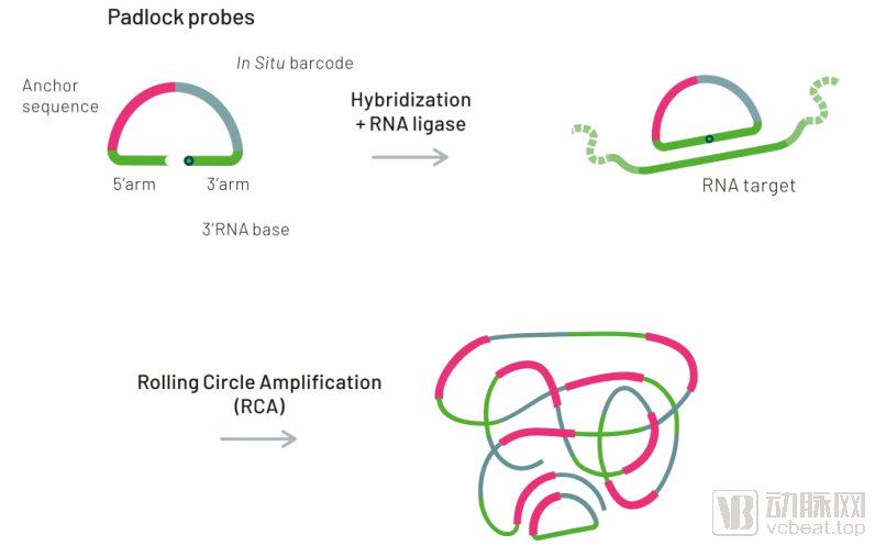 10x Genomics的竞争对手还不止ReadCoor一家。另一家公司Cartana也在做类似的产品,使用的方法与Visium和RC2都有些关联。Cartana使用特异性的锁式探针在直链cDNA上实现了滚环扩增。引物上的条形码区域可以保证扩增产物的空间定位准确。但是这项技术目前还无法实现转录组测序,只能根据研究方向设计专门的引物。但是这一方法仍然为Visium平台的发展带来了潜在的竞争压力,10x Genomics也迅速的捕捉到了这一点。