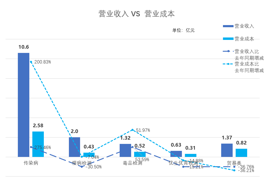 如果说好的产品是企业的命脉,那么万孚在产品战略方面是如何做到“孚获众心”呢? 万孚的POCT产品线采用横向延宽、纵向深挖的战略部署,横向覆盖妊娠检测、传染病检测、毒品检测、慢性疾病检测市场;纵向覆盖各级医院、社区门诊、卫生院、OTC药房以及疾病控制中心、公安、军队等渠道。 2020年上半年营业收入16.06亿,比去年同期增长了66.01%;归属于上市公司股东的净利润为4.49亿,同比增长了117.42%;归属于上市公司股东的扣非净利润为4.39亿,比去年同期增长了127.6%。 营收方面,跟去年同期相比,四大主营产品中(传染病、慢病检测、毒品检测、优生优育检测)传染病的营收涨幅275.46%,其他产品因为疫情管控原因有所下滑。其中慢病检测营收下降-30.5%,原因在于第一季度疫情防控,各大医院门诊人数大幅下降;优生优育检测产品营收下滑-15.21%,原因在于国外市场的英国、西班牙、意大利均为疫情重灾区,所以海外业务受到些许影响。 2020上半年营收与成本对比 疫情突发虽然干扰了企业常规的经营活动,但也创造了很多机会。比如各地频爆进口冷冻食品外包装检测到新冠病毒活体,检测技术和资源过度集中在大城市三甲医院,而基层乡村卫生所和社区医院检测能力建设不足等等,这些都是POCT未来的用武之地。 市场对POCT检测产品的重视程度空前,需求激增。那么,POCT有没有可能成为下一个爆点?万孚生物在下一个五年,又会如何乘风破浪、直济沧海呢?我们把答案留给时间。 ![]() 贰 上游布局产品与技术 ![]()