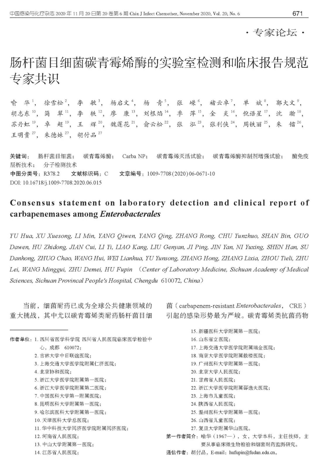 【最新】肠杆菌目细菌碳青霉烯酶的实验室检测和临床报告规范专家共识