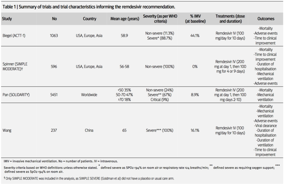 表:四项瑞德西韦RCT研究的特点汇总