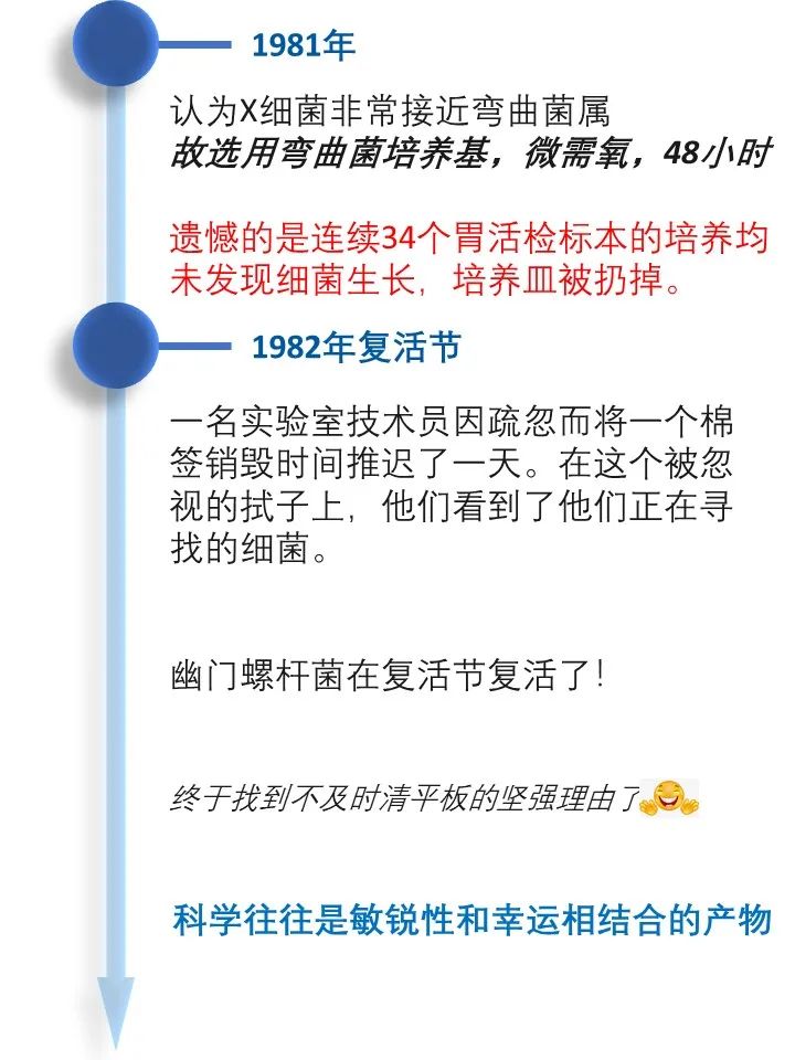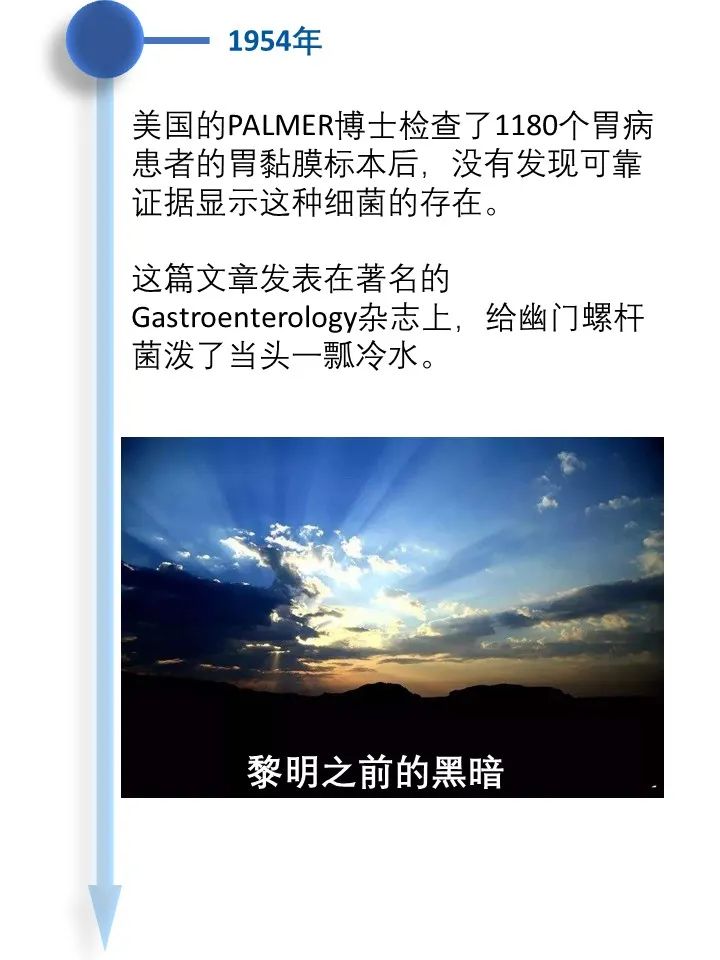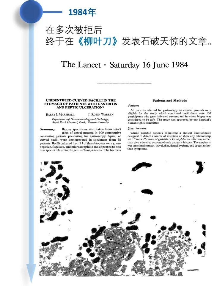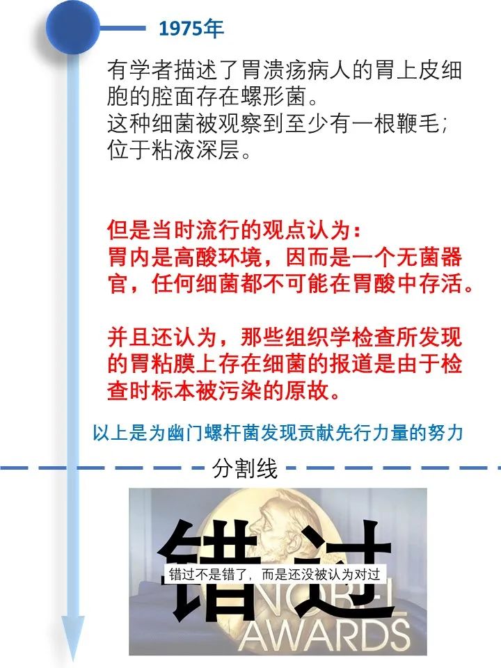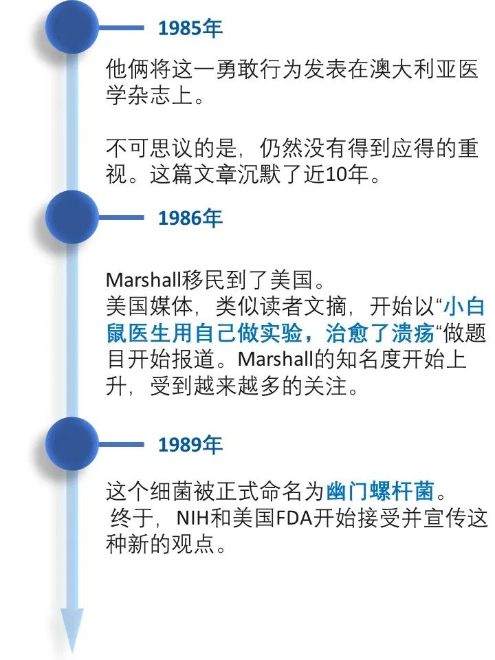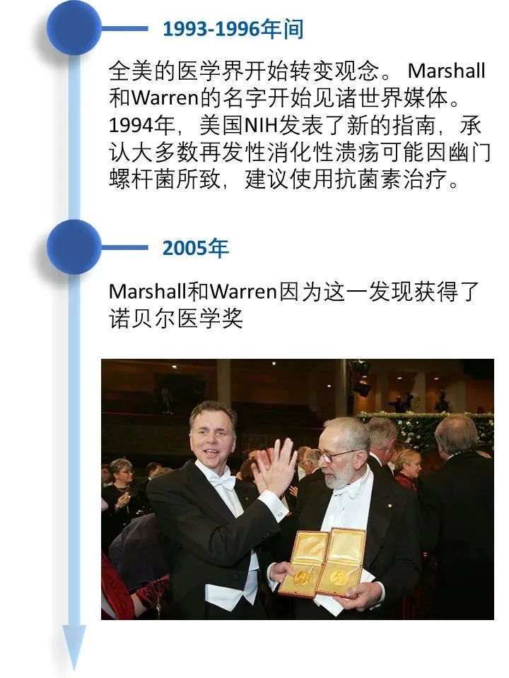 道之所在,虽千万人。吾往矣!  今天借着讲述幽门螺旋杆菌发现的历史过程,回顾了一段以身试菌的精彩故事。 当你坚定的相信自己发现了与常识相悖的事情而得不到众人认可的时候,不要急躁,因为有时候真理真的掌握在少数人手里。这时不放跟马歇尔学一学,找个志同道合的同行者,坚持探索下去,兴许一不小心还能搞到个诺贝尔奖呢! |
