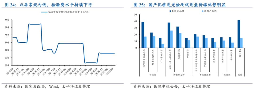 2、对于部分国产IVD企业,按病种付费有利于加速抢占市场份额 虽然检验类面临控费压力,差异化视角来看,这反而是国产头部厂商提升在大型医院市场份额的机会。 前段时间,以北京为样本做了一次检验项目的调价,调价的大概思路其实是:试剂不再分国产、进口的,只要是同样的方法做出来的结果都是一个支柱架构。大概的意思是,只要不影响检验结果的前提下,所有同类方法的试剂去归为一类,那么以控费为目标去做选择的话肯定是优先考虑性价比。 以上图发光试剂盒为例,国产试剂的性价比是毋庸置疑的。 今年北京6月15号降价后,可以看到,部分当地医院置换应用国产试剂的都已经在积极的替换,尽量用性价比更佳的试剂做替代。其中进口产品被替换的差额显然对示范控费起到了立竿见影的效果,这也为地方实施DRG或DIP起到了铺垫作用。 如此一来,部分国产IVD厂商某些细分项目如果是性能与稳定性媲美进口产品的话,那么可以在这一波控费进程中,成为“被考虑的对象”,从而抢得一部分进口厂商的份额,有利于进口替代。 3、IVD的集采未来存在较大可能性,但短期内仍有喘息的机会 IVD先前被认为是“很难”集采的,普遍观点是检验项目种类繁多、检验可靠性和置换成本高为主。 如果按照按病种付费方法和北京调价的思路,以“同效化”来归类竞争的话,那么集采的可操作空间还是相当大,这和冠脉支架的无组别攻击有点像。 正因为IVD市场足够大,不少产品也有可标准化竞争的基础,未来被集采也可能只是时间问题,真要说首个目标细分,那也大概率是从生化开始。 为什么又说短期内有喘息的时间?这跟前面说到的置换成本和控费推进进程息息相关。 置换成本:目前医院很多设备仪器都是封闭式的,只能适配单个厂家的试剂,最典型就是发光,所以试剂是没办法做替换的,从这方面来说连同设备更换成本太高,医院的动作会延后一些,检验项目瘦身的时间会更延后。 控费进程:DRG或DIP推行后,检验项目可能会拿到门诊去完成,不走医保费用。而一些分子类特色项目,这些项目将全部外包给ICL,病患直接和第三方公司结算,医院完全不参与。 所以,我们通过这些分析,未来更应该将着眼于化学发光、特色化项目(自费)等细分机会上来。 而特色项目,举个例子,可以关注肿瘤分子诊断以NGS为代表的技术,目前广阔的早筛市场仍处于一片蓝海,消费者以自费筛查为主,送检为主流的销售模式完全不受医保控费的影响。 总结:三季报发布到明年二季度前是一轮业绩空窗期,而四季度是医疗健康板块兑现和调整期的判断已是屡试不爽。 短期内IVD行业的逻辑其实并无变化,如果IVD行业的龙头们有继续被错杀的机会,仍然是投资者比较舒服的上车点。 |