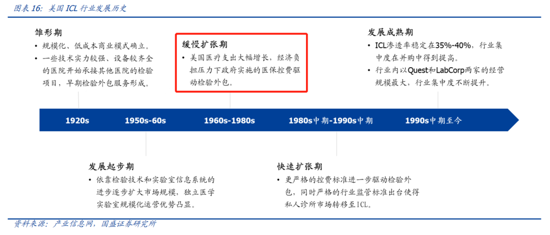 国内ICL数量从2010年开始爆发式增长,年均保持约20%的增长率,但目前行业的渗透率仅在5%左右,空间仍然巨大。从国内ICL龙头金域医学的业绩增速年年快速稳定增长就可见一斑。 核心逻辑在于:ICL拥有更丰富的检验项目、更低的检验成本,这与国家控费和推行分级诊疗的大趋势不谋而合,医院部分项目外包已然成为了大势。 我们来看一组数据: 根据卫计委发布第三方检验实验室2018年的报告显示,ICL 有着明显的降低成本优势,以2016年为基数推算,2016-2020 年间 ICL可为医院节省的检验花费为104、137、176、221、274亿元,每年可节省医保医保支出近1%。 另外,一般公立医院的检验项目数量往往只有几百项,而目前头部ICL如:金域医学、迪安诊断等大可提供2500-2700项检验。 注意,这里为什么是部分外包而不是整体外包?目前ICL承接的很大一部分其实是基层医疗机构的检验包,因为基层医疗机构无论是样本数量、检测项目丰富度还是控制检测成本能力整体较弱,更需要外包给ICL。相反,大型医院对检验项目的价格敏感度低、时效性要求高,就算控费趋严,也大概率会保留部分必要的检验能力,不会整体外包。