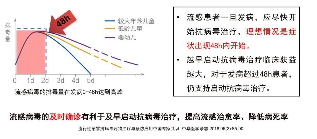 我们为什么提倡流感病毒的快速检测,希望在短的时间拿到准确的结果?因为抗病毒药物的使用与它的时限相关,如果在症状出现48小时内确诊,给予抗病毒治疗,患者受益非常大。