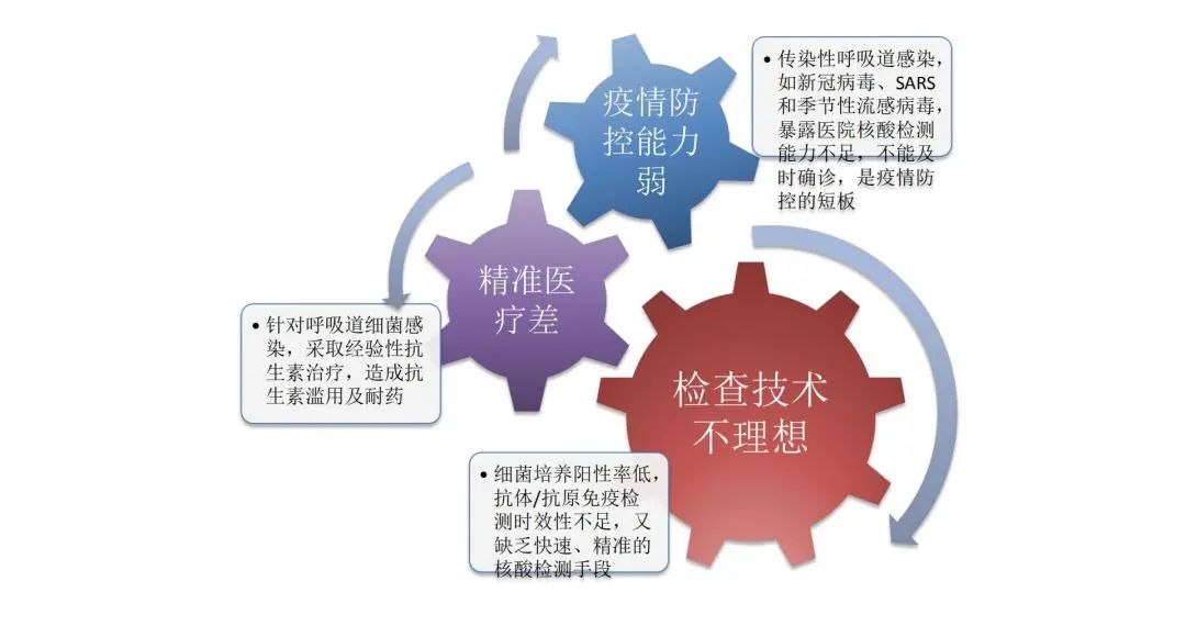 呼吸道感染诊断国内临床多应用传统的培养手段与PCR等分子生物学检测,但难点与遗憾并存 呼吸道感染的诊断非常重要,并且是难点问题。人体的呼吸道与外界相通,其病原学类型非常复杂,既包括细菌、真菌,也包括病毒,甚至寄生虫的感染。目前的实验室对于细菌诊断而言可能技术相对比较成熟,但对一些少见的细菌感染,比如诺卡菌、非结核分枝杆菌,诊断能力还不够。真菌方面,除了传统真菌培养,隐球菌采用隐球菌荚膜多糖抗原试验、曲霉菌采用GM试验等提高了诊断率,但是在分子生物学诊断方面,没有更好的手段。分子生物学检测对于真菌检测的手段应用不广泛,给临床工作中的真菌感染诊断带来很大问题。此次新冠疫情之前,国内很多医院对呼吸道病毒的检测能力较弱,常常应用的是抗原快检,甚至价值不大的抗体诊断的方法。但我们也欣喜地看到,疫情发生以后,在国家的强烈推动下,国内很多二级医院都建成了自己的分子生物学实验室,这能使我们更多感染病原的诊断通过分子生物学鉴定成为了可能。