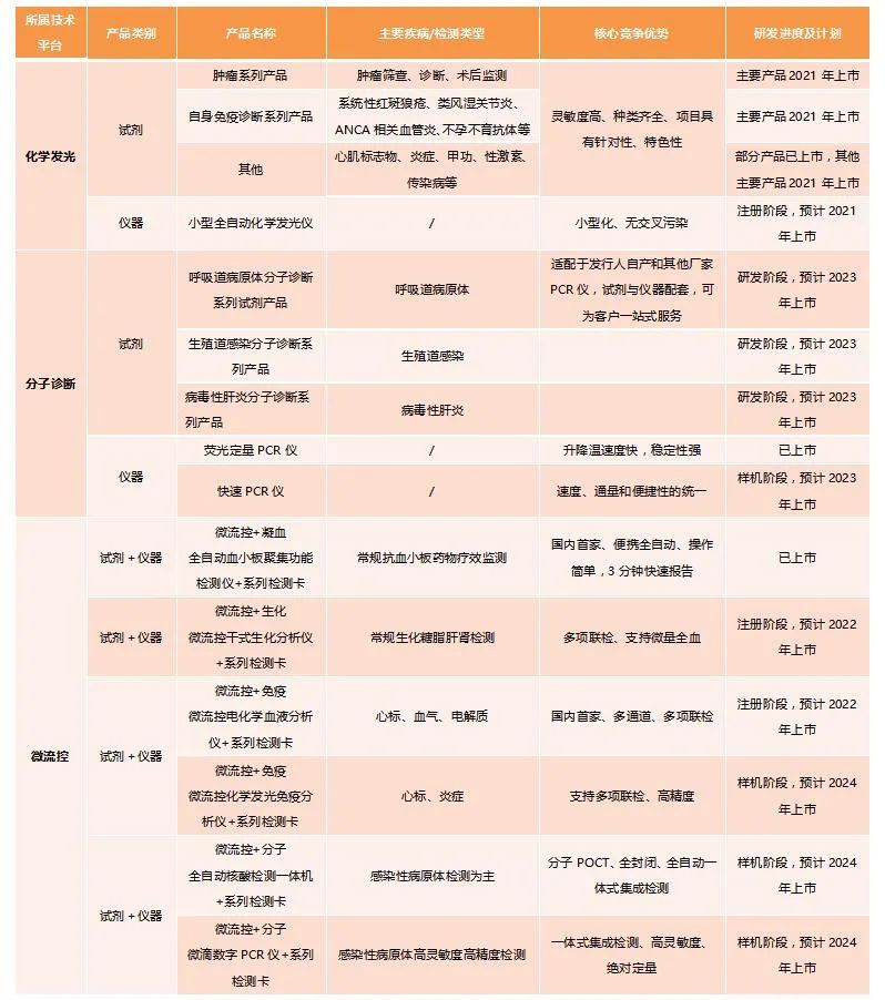 公司简要介绍 公司成立于2008年,主营业务为体外诊断试剂及仪器的研发、生产和销售。经过十余年的发展,公司从最初的单一胶体金POCT试剂产品发展至目前的胶体金和荧光POCT、凝血诊断、生化诊断、化学发光免疫诊断和分子诊断五大系列的技术与产品平台,是国内少数技术和产品覆盖体外诊断多个主要领域的创新型、平台型企业。近几年来,企业持续重点加大在化学发光、分子诊断和微流控技术三大方向的研发和资源投入。 截至本招股说明书签署日,公司累计获得256项产品国内注册/备案证书,35项产品国外认证,拥有70项专利;产品已在全国超过2500家各类医疗机构广泛使用,其中三级及以上医院近900家。公司已经取得欧盟CE认证、巴西、厄瓜多尔、秘鲁、菲律宾等国际认证,并于2020年3月取得美国食品药品监督管理局EUA应急使用授权——总共有31项产品取得欧盟CE认证,4项产品取得其他国家认证。 核心技术及来源 据招股书披露,公司在POCT诊断领域拥有14种自主研发的核心技术;凝血诊断领域,拥有9种自主研发的核心技术;生化诊断中有6种自主研发的核心技术;化学发光诊断中的7种核心技术均为自研;分子诊断领域则为6种;微流控领域的23项核心技术为自主研发。 因而,乐普诊断凭借强大的自有技术能力,在POCT领域,公司已成长为国内率先开发出能够定量检测多项心脏标志物的公司之一,同时实现了POCT全自动检测仪器的配套开发,是国内少数具备全自动荧光POCT仪器和试剂自产能力的厂家。 在凝血诊断领域,成为国内首家突破血栓弹力图技术壁垒、实现国产化的厂家,其产品-西芬斯血栓弹力图仪是国内自主研发上市的第一台血栓弹力图仪,打破了国外垄断,已通过欧盟CE质量认证。 在生化诊断领域,是国内较早实现胶乳免疫比浊技术、酶循环法技术的生化厂家之一。在化学发光领域,公司自主研发的磁微粒直接化学光免疫诊断技术已经成熟,是行业内少数实现吖啶酯直接发光的厂家之一。 在分子诊断领域,公司是国内市场上少数既有分子诊断试剂又有仪器设备配套的厂家之一,产品荧光通道数量多,可进行四色试验,同时也是国内少数实现试剂全血检测的厂家之一。 而在微流控方面,目前已经形成“上市一代-定型一代-设计一代”的产品布局。凝血、生化微流控产品陆续上市,免疫、电化学微流控产品定型注册,分子诊断微流控一体机、微流控数字PCR预研开发。 公司客户及供应商情况 报告期内,公司不存在向单个客户销售比例超过当期销售总额50%的情况或者严重依赖少数客户的情况。但历年来,母公司乐普医疗及其控制主体均占据第一位,2020年上半年占比则超过10%,乐普诊断的业绩对母公司及其控制主题具有一定程度的依赖。 从供应商的情况来看,在报告期内,公司不存在向单个供应商的采购比例超过总额的50%的情形。2017年-2019年间,乐普医疗及其控制主体一直为乐普医疗的第一大供应商,并不断增加;2020年上半年乐普医疗及其控制主体略降为第二大供应商,但占比也高达近20%。此外,公司原材料主要来源于国内企业,因而在上游段被卡脖子的风险较低。 总的来看,乐普诊断对母公司乐普医疗在上下游存在着一定的依赖关系。 财务表现 2017年-2019年,乐普诊断分别实现营业收入1.63亿元、2.26亿元、2.69亿元,净利润分别为2684.23万元、3277.29万元、3428.03万元。受疫情对试剂产品需求增加影响,今年上半年,乐普诊断实现营业收入5.23亿元、净利润2.73亿元,远超2019年全年业绩水平。 最近三年及一期,公司核心技术产品收入占比分别为92.21%、93.56%、92.80%和 98.35%。 截至招股书报告期,2017-2019年公司研发投入占营业收入的比例分别为16.53%、13.91%、16.41%,2020年上半年则为3.87%。公司对研发的高投入,让其在完善体外诊断产品管线的同时不断创造国内多个第一,逐渐成长为以自研核心技术为驱动力的公司。 |