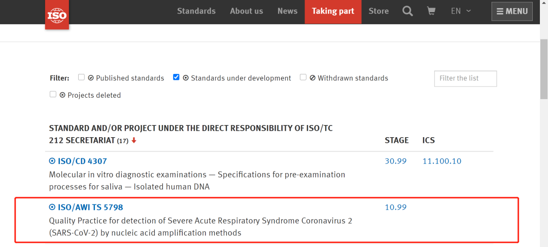 △ 国际标准化组织(ISO)官网公布华大基因联合提案的新冠病毒检测国际标准获准立项