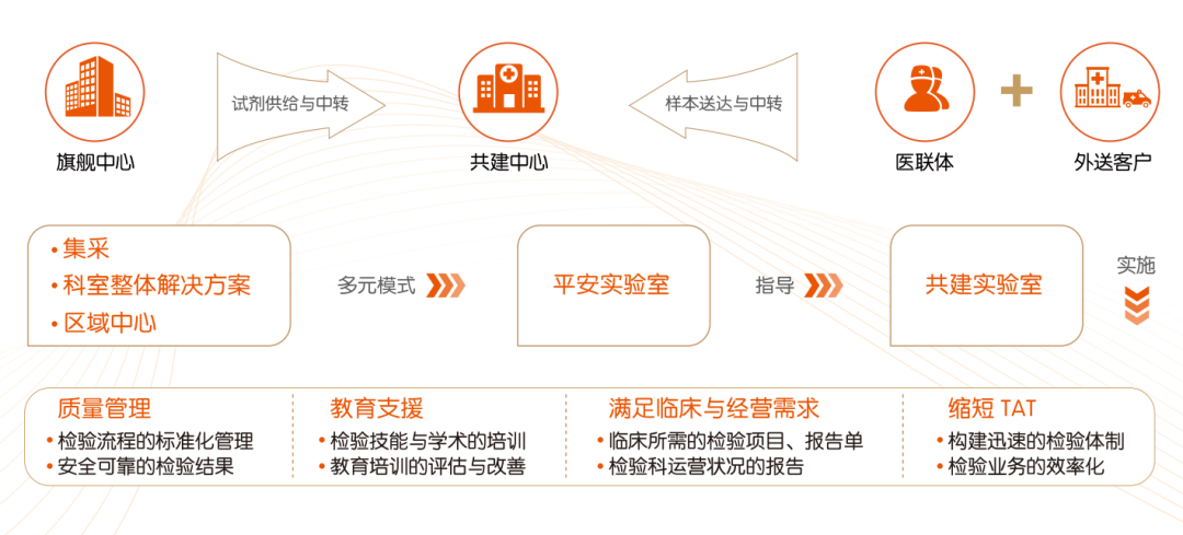“抗疫一线”,独立实验室承接武汉80%检测量 2020年的新冠疫情对国家公共卫生防御体系提出了更高要求,独立医疗机构对于医疗系统的补充作用进一步凸显。 据卫健委统计,在新冠疫情期间,以武汉、黑龙江为例,独立医学实验室检测量与公立医疗机构检测量的比例约为4:1左右。意味着独立医学实验室很好承接了公立医疗机构三至四倍的工作量。 其中就包括成立一年多的武汉平安好医医学检验实验室(以下简称“武汉检验中心“)。 “年轻”的平安武汉检验中心第一时间承接了疾控系统新冠病毒核酸检测工作,和另外12家第三方机构一起,承担起武汉每日病例检测量的80%,并出色的完成了任务。 然而能承担如此重任的底气,来自于其强大的技术实力与质量标准。 02 对标国际标准 从预防到愈后,全生命周期管理 经历疫情考验我们发现,作为“防御体系”的重要组成,中国可进行核酸诊断的生物安全二级(BSL-2或P2)及以上实验室资源相对稀缺。一方面是符合技术标准的实验室不多,另一方面是检验项目覆盖不全。 所有实验室符合P2及以上标准 所有平安好医医学检验实验室都是以P2及以上标准建立的,通过构建迅速的检验体制,加上高精度管理,能实现全自动化操作、多检验系统同时运行,使检验业务高效率化,快速响应,提供精准报告。 几千个检验项目,从普检到特检全面覆盖: 检验中心设有临床体液血液、临床微生物学、临床化学检验、临床免疫血清学、临床细胞分子遗传学、病理等专业组。 此外,通过实验室布局优化、设备升级、供应链建设、信息化建设、服务质控体系建设等,提升了区域检验中心服务能力。 全球先进的检验设备: 包括来自全球顶级业内厂家的全自动检验分析流水线、最新高灵敏度血球分析流水线以及全自动免疫分析仪等。 自建特色冷链物流,确保样本质量: 对标日本SRL公司的质控体系,使用定制化的标本箱,通过物流小程序、箱载/车载GPS定位和后台监控,全链路信息化追踪每一个样本,提供安全可靠的冷链物流,最大化保证检验的质量。 日本SRL公司是目前全球第四、亚洲第一的第三方医学检验服务商,拥有50年积淀的质量管理标准,以及在医学检验流程、质量、效率、成本控制方面的丰富经验。 区域检验专家顾问团: 平安好医还与国内顶级三甲医院和知名医生集团紧密合作,签约近百位权威检验专家,组成专家顾问团,成为平安好医检验“金标准”的强大后盾。 “医学检验+影像诊断+健康管理”的创新服务模式 目前第三方医疗机构大多专注于细分领域。 我们发现,对于患者来说,无法在这些细分领域的医疗机构体验到全方位一站式的健康管理服务;而对于下游B端客户来说,需要对接更多服务供应商,造成效率低下以及资源、成本的浪费。 因此,向平台化模式发展,打造可兼容各项业务模式的“平台”、全方位布局成为具备强大实力的第三方医疗机构的长期战略方针。 而平安检测从建立就首创集影像诊断、医学检验、 健康管理“三位一体”的医疗创新业态。让客户体验一站式全方位服务。 ▲ “三位一体”检测机构 并以三大业态为基础,打造共享医疗平台,辐射区域内其他大健康领域。 ▲ 共享医疗闭环 以共享医疗的多元化模式助力中国医疗资源分配,分级诊疗建设。 03 创新是中国平安的“历史传承” “做第一个吃螃蟹的人”似乎成为了中国平安的历史传承。