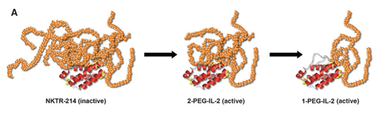 1976年发现的IL-2,在整个免疫治疗史上,有着不可替代的位置。Rosenberg称之为第一个人类肿瘤有效的免疫治疗方法。NCI肿瘤细胞生物学实验室的RobertGallo,使用PHA刺激淋巴细胞产生条件培养基培养骨髓细胞,其中90%的T细胞长达9个月的生存维持。在此之前,原代T细胞无法体外培养,是免疫学发展的巨大瓶颈性技术问题。这个未被纯化的成分称之为T细胞生长因子(TCGF)。NCI肿瘤细胞生物学实验室的RobertGallo,通过离子交换色谱和凝胶分离,从条件培养基中分离浓缩了TCGF,并且得出了大致的分子量约15KD。日本癌症研究基金会肿瘤研究中心,Junji Hamuro等人,克隆了IL-2的基因,完成了测序工作。人们可以完整的了解这个T细胞生长因子的基因和氨基酸序列等基础信息。但是为什么第一个被克隆的细胞因子成为IL-2而不是IL-1呢?原因是,当初有科学家认为,有另外一个细胞因子刺激了IL-2的产生,那个未知的因子应该是1。Nature发表了三篇IL-2受体α克隆的文章(文献4,5,6),分别来自于Immunex 公司(2002年Amgen收购),NCI,和日本京都大学。NIH国立儿童健康与人类发育研究所在Science发表文章(文献7),发现了IL-2另外一个受体p70,1986和1987年还有多篇文章报道IL-2 p70受体。日本东北大学医学院,1991京都大学分别发表文章发现IL-2Rγ(文献8,9)。至此,IL-2受体α,β,γ被发现。之后IL-2和受体的结合,被Stanford的科学家解析。IL-2-IL-2Rα,β,γ复合物结构(文献10) 1983年IL-2基因被克隆,是IL-2药物开发的里程碑式基础研究,1983年和1984年多个实验室进行了IL-2的大肠杆菌表达。1984年11月,一个33岁黑色素瘤转移的病人接受重组IL-2治疗,肿瘤消退,此后病人无疾病生存29年。1985年Rosenberg在肝癌转移小鼠模型注射重组IL-2,获得很好的治疗效果(文献11)。1985年Rosenberg等在新英格兰医学杂志报道,使用IL-2和LAK细胞进行了25个癌症转移病人的临床研究。Rosenberg 2014年发文评述IL-2是第一个人类肿瘤有效的免疫治疗方法(文献13)。1991年诺华与linigen联合研发的重组IL-2药物 Proleukin(Aldesleukin,阿地白介素)被FDA批准治疗转移性肾癌,1998年批准治疗转移性黑色素瘤。但是因为半衰期短,治疗窗口窄,毒副作用大,且同时刺激Treg活化,限制了临床使用。IL-2R有α(CD25),β(CD122),γ(CD132),其中,α为低亲和力受体,且下游无信号传导,β和γ组成中等亲和力的受体,下游可以通过JAK传导信号,在α参与的情况下,亲和力增强为高亲和力受体。从1990s开始,很多的科研单位和企业开始,通过突变改变IL-2和不同受体亚单位亲和力,以增加活力,降低毒性。2000年Bayer 设计了BAY50-4798,选择性结合IL-2Raβγ,减少和IL-2βγ的结合,减少IL-2Rβγ+ NK细胞介导的毒性。但是最终临床治疗和传统IL-2比较,没有改善。NKTR-214是由美国Nektar公司开发的一种针对CD122 (IL-2Rβ)抗原的偏向型激动剂,其通过靶向作用于CD8+效应T细胞以刺激肿瘤杀伤T细胞的增殖,从而利用患者自身免疫系统对抗癌症。NKTR-214通过对首个肿瘤免疫药物aldesleukin进行聚乙二醇(PEG)修饰,有效克服了其严重的毒副作用并延长起效时间。Synthorx公司(赛诺菲25亿美金收购)产品,通过向宿主细胞转入非天然氨基酸,在该位点实现定点PEG偶联,和IL-2Rα低亲和力,但是和IL-2Rβγ有接近天然的亲和力,选择性激活CD8+T细胞,不激活Treg。NCT04009681,A Study Evaluating Safety and TherapeuticActivity of THOR-707 in Adult Subjects With Advanced or Metastatic Solid Tumors(THOR-707-101),Phase1/212月25日恒瑞偏向性IL-2,SHR-1916获批临床。SHR-1916是恒瑞医药自主研发的全新PEG修饰和位点突变的IL-2分子,可以通过激活JAK1/JAK3/STAT5信号通路,促进CD8⁺T和NK细胞增殖,发挥抗肿瘤作用。通过靶向肿瘤抗原抗体将IL-2携带至肿瘤局部,是另外一种策略,可以增加半衰期,增强靶向性,降低毒性。hu14.18-IL2(EMD273063),由EMD Serono研发,是一种抗GD2免疫因子,由抗GD2抗体14.18(抗体)和两分子的IL-2(免疫因子)融合而成的蛋白,主要用于治疗黑色素瘤。临床研究:NCT00590824,Pilothu14.18-IL2 in Resectable Recurrent Stage III or Stage IV Melanoma,phase2 在一些高复发风险的黑色素瘤患者中,使用IC治疗的患者出现了长时间的无瘤生存。Philogen S.p.A.公司研发,L19靶向细胞外基质(ECM)纤维连接蛋白异构体B-FN的的结构域B(ED-B)。NCT02957019,A PhaseI/II Study of the Tumor-targeting Human L19-IL2 Monoclonal Antibody-cytokineFusion Protein in Combination With Rituximab in Relapsed or Refractory DiffuseLarge B-cell Lymphoma (DLBCL)NCT04362722,IntratumoralAdministration of Daromun in Non-melanoma Skin Cancer Patients (DUNCAN),phase2Philogen S.p.A.还开发了F16IL2,有多个临床在开展,但是进度未更新。RO6874281,来自于Roche,是IL-2突变体与靶向FAP的单抗融合而成的双特异性蛋白,其中靶向肿瘤胶质抗原FAP的单抗用于将蛋白相对准确地定位到肿瘤部位,IL-2突变体部分则偏向性地结合和调控肿瘤微环境中的T细胞表面的IL-2Rβγ二聚体,从而激活微环境中的抗肿瘤免疫效果。 NCT03875079(Metastatic Melanoma),NCT03063762(Metastatic Renal Cell Carcinoma),NCT02627274(联用Trastuzumab or Cetuximab),NCT03386721(实体瘤,联用Atezolizumab),NCT03193190(PDAC) 阻断性抗体用于炎症性疾病,非阻断性抗体用于肿瘤免疫治疗。适用为有多发性硬化症(MS)的复发型成年患者的治疗7例严重不良反应,主要为脑炎和脑膜炎,这才紧急启动撤市程序。