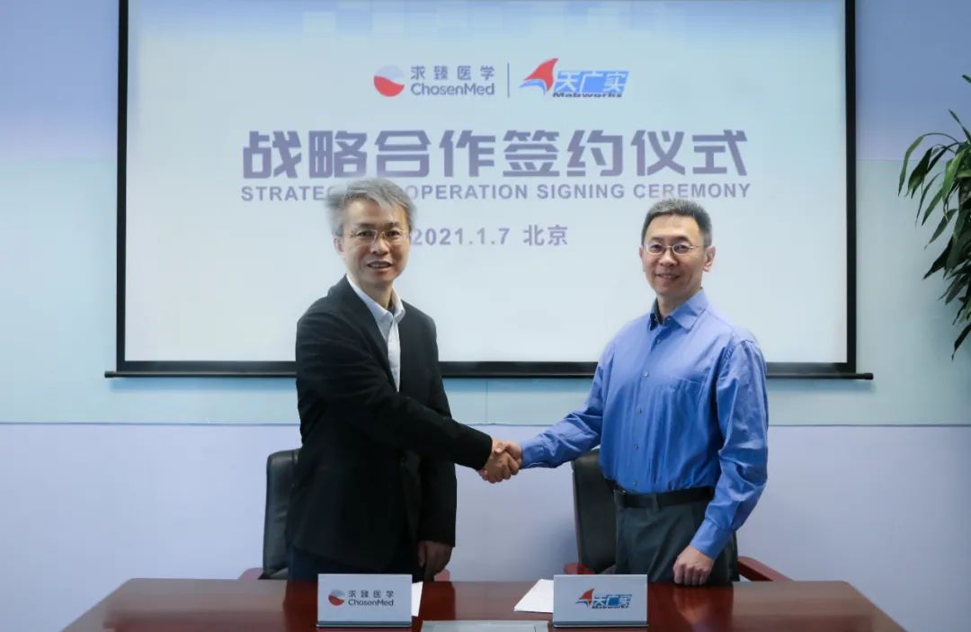 2021年1月7日,求臻医学科技北京有限公司(以下简称“求臻医学”)与北京天广实生物技术股份有限公司(以下简称“天广实”)签署战略合作协议。双方将充分利用资源优势和专业优势,在实体瘤药物相关靶点伴随诊断试剂盒开发及肿瘤药物研发领域进行深化合作。 求臻医学总裁周启明博士(左)天广实董事长李锋博士(右) 本次战略合作,双方将基于“胃癌、乳腺癌、胰腺癌等实体瘤药物相关靶点的伴随诊断试剂共同开发”项目展开深入合作。求臻医学将在靶点筛选、肿瘤Panel的生物信息学数据挖掘、数据解读、中心实验室检测、协助受试者招募/入组等方面,提供基因检测相关技术服务及经验;天广实将在同步临床试验、配合伴随诊断试剂的注册申报等方面给予全面支持。