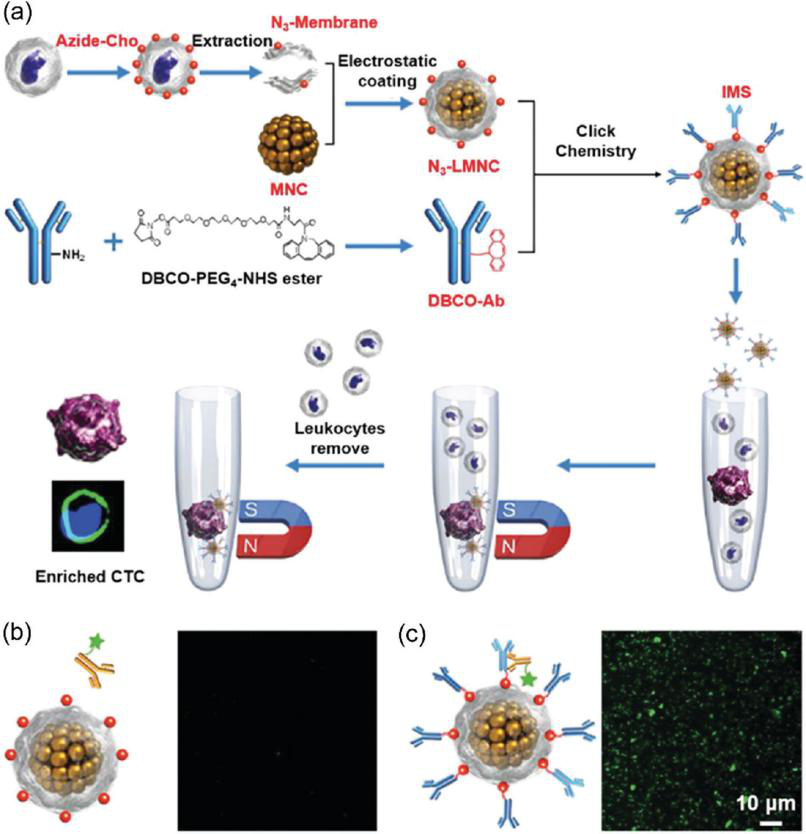 在体内,CTCs的正富集捕获和丰富了大量的稀有CTCs。Galanzha等[10]提出一种在小鼠血流中磁捕获CTCs的方法,然后进行快速光声检测。该方法通过整合体内多重靶向、磁富集、信号放大和多色识别,使CTCs能够从荷瘤小鼠血管中的大量血液中浓缩,这可能为癌症的早期诊断和预防人类转移显示出潜力。 体内富集在CTC检测特点是:(1)富集时间非常长;(2)技术不成熟,没有关于CTC纯度的数据报告;(3)成本很高:CTC捕获需要抗体。