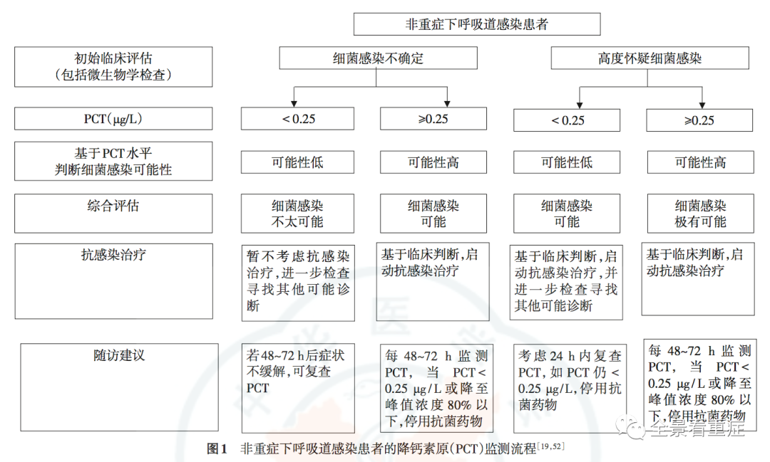 图1、非重症下呼吸道感染患者的降钙素原(PCT)监测流程
