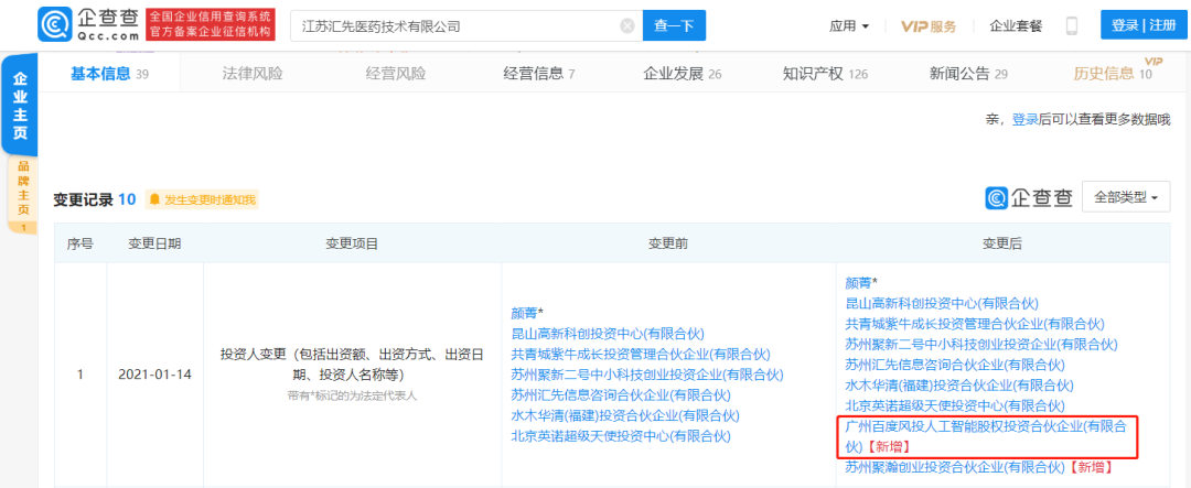 百度加码体外诊断赛道 1月14日,江苏汇先医药技术有限公司(以下简称「汇先医药」)发生工商变更,新增股东广州百度风投人工智能股权投资合伙企业(有限合伙)、苏州聚瀚创业投资合伙企业(有限合伙),同时公司注册资本由1000万元人民币增加至1128.29万元人民币,增幅为12.83%。 汇先医药是一家专注于体外诊断微流控系统开发的公司,法定代表人为颜菁,经营范围包含:医药技术领域内的技术服务、技术咨询、技术转让、技术开发;医疗器械的生产(按《医疗器械生产许可证》核定范围经营);医疗器械销售等。 汇先医药技术有限公司成立于2018年,是一家以微流控为核心技术的医疗诊断产品研发和制造公司。汇先医药致力于开发和提供肿瘤早筛和预后监测,感染病原体微生物快速检测等体外诊断试剂产品。 该公司提供的肿瘤液体活检和mNGS快速检测产品,一方面针对肿瘤手术后无法再次取到肿瘤组织的重症病人,提供便捷、快速的血液检测试剂盒产品,为病人提供精准和个性化的检测结果。另一方面针对ICU重症感染病人,提供快速检验平台。应用该平台,在极短的时间内即可检验判定病人的感染种类,如病毒、细菌、真菌、肺支肺衣、寄生虫等病原微生物,同时还可给出耐药基因信息,为医生提供更为准确的治疗依据。