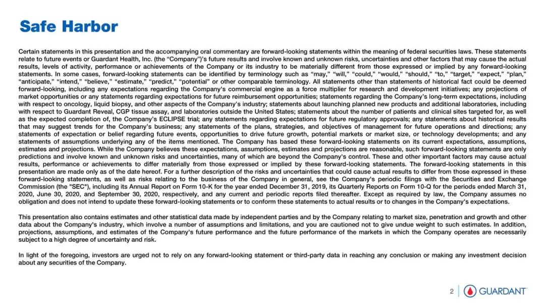 Guardant Health(GH),2012年成立,2018年上市,肿瘤液体活检领域的先驱,也是第一家将基于NGS技术的液体活检伴随诊断产品商业化的公司。 Guardant Health(GH),是由全球最大的基因测序系统制造商Illumina的两位前高管 Helmy Eltoukhy 和 AmirAli Talasaz 于2012年共同创立,Eltoukhy 和 Talasaz 分别担任GH的CEO和COO。 Guardant Health是一家领先的肿瘤精准医疗公司,致力于通过专有的血液检测、庞大的数据集和先进的分析技术来帮助攻克癌症。他们的宗旨是:“通过简单的抽血便可以帮助癌症患者找到合适的药物,未来,它还可以更早的检测出癌症”。2020年8月7日,FDA批准了GH的Guardant360 CDx(55基因)上市,这也是首个基于NGS技术的液体活检伴随诊断产品。 2021年1月11日,Guardant Health(GH)在JP Morgan医疗健康会议上发表演讲,下面我们通过肿瘤液体活检领域先驱Guardant Health的演讲内容,来看液体活检的市场应用: 美国液体活检的市场机(规)会(模)在700亿美元以上!Guardant Health的液体活检平台包括多个维度的检测,比如ctDNA体细胞变异检测,ctDNA甲基化检测以及片段化组学检测。 ① 治疗选择:市场机会60亿美元;GH推出Guardant360 CDx(扩大伴随适应症)和Guardant360 LDT(扩大肿瘤分析,分子反应和纵向监测方面的应用)两款液体活检产品,最值得关注的一点就是,GH将会于2021年推出组织CGP基因检测产品,包括TMB,MSI及HRD; ② 复发监测:市场机会150亿美元;2021年第一季度,GH将会推出微小残留病灶(MRD)和复发监测的产品GuardantReveal(ctDNA突变+ctDNA甲基化),用于早期结直肠癌的检测,91%灵敏度和100%特异性,后续还会有其他类型癌症的产品推出; ③ 癌症早筛:市场机会500亿美元,其中泛癌早筛300亿美元,结直肠癌200亿美元;GH的结直肠癌早筛产品有望2021年获FDA批准和CMS覆盖,LUNAR-2检测在结直肠癌早筛方面的灵敏度有90%,特异性可达97%,检测内容包括ctDNA体细胞变异,ctDNA甲基化以及片段化组学,后续还会有其他类型癌症的早筛产品推出; ④ 生物制药:市场机会20亿美元(60亿美元治疗选择中的20亿),Guardant360液体活检与组织活检相比,加速了临床试验登记,检测时间快了3倍;试验入组率提高了2.3倍,二者具有类似的ORR和PFS;与更多药厂开发药物的伴随诊断产品,比如AMG 510的伴随等;推出GuardantINFORM平台应用于靶向药物开发,临床试验优化和上市后研究。 下面,带大家详细了解液体活检先驱GH市场布局: 演讲开始,Guardant Health就告诉了我们液体活检的几大应用场景:Therapy Selection(治疗选择),Recurrence Monitoring(复发监测)以及Early Cancer Screening(癌症早筛)。 |