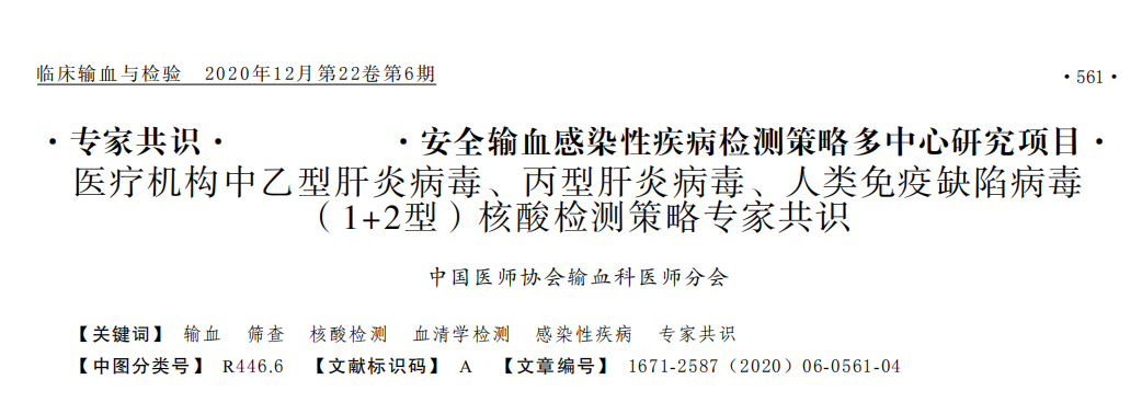 为降低院内交叉感染,降低医护人员的职业暴露风险;发现HBV、HCV、HIV感染者,提高重大感染性疾病诊治水平,减少医患纠纷,在国家卫生健康委科技重大专项及圣湘生物的支持下,全国各地临床输血与检验专家共同编写了本共识,针对核酸检测技术在术前/输血前感染性疾病筛查领域的规范应用和良性发展提出以下建议: