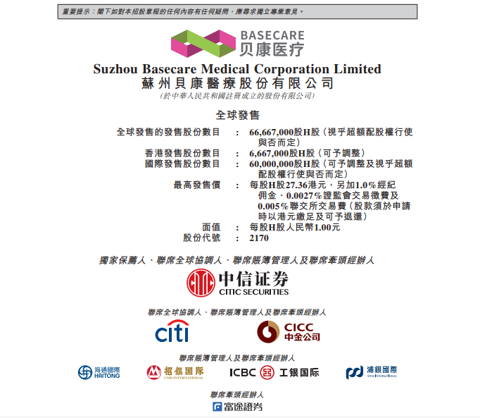 近日,贝康医疗发布公告称,公司将于2月8日在港交所上市。此外,公司已于2月1日结束招股。本次共发行6666.7万股股票,每股发售价为26.36港元-27.36港元。 根据股票参考发售价区间计算,假设发售价为每股股份26.86港元(即发售价范围中位数),公司将收到全球发售所得款项净额约为16.847亿港元。 截至目前,贝康医疗已获得奥博资本、清池资本等七家基础投资者认购。按参考发行价区间计算,七家基础投资者同意认购约9000万美元股份。 贝康医疗——“辅助生殖独角兽” 贝康医疗是中国辅助生殖基因检测解决方案的创新平台,拥有首个也是唯一获国家药监局批准的三代试管婴儿基因检测试剂盒PGT-A,参与制定了该领域的国家标准,代表着三代试管检测领域的最高水平。 据了解,贝康医疗研发的PGT-A试剂盒,经过4年的临床试验检验,能将试管婴儿成功率提高至72%,流产率降低到6.9%,具有极其显着的意义和价值,不仅填补了中国在三代试管婴儿基因检测技术方面的空白,还开辟了一条全新的赛道。 募资用途:技术、设备、产品齐齐升级 此次募资完成后,公司拟将30%的资金用于公司核心产品PGT-A试剂盒生产、营销能力的提升,包括升级现有生产机器及设备、采购及安装新型自动化操作设备及机械和在中国的商业化营销活动;约20%将用于PGT-M试剂盒的临床试验、注册申报及商业化活动;约30%将分配用于公司其他产品的开发、临床试验及注册申报;余20%将用作公司营运资本,提高公司的研发能力及提升公司的技术。 辅助生殖市场规模不断增长,前景良好 弗若斯特沙利文报告显示,中国的不孕率从1997年的3.5%提高至2019年的16.4%,预计2023年中国不孕率将增至18.2%。 2017年,约有527,000名患者在中国接受辅助生殖服务,并预期2023年将增长至约956,000名,复合年增长率为10.4%。 虽然我国对于辅助生殖服务的需求日益增长,但资料显示,2018年辅助生殖服务市场渗透率仅7%,由此可以看出我国辅助生殖服务市场仍有巨大的成长空间。贝康医疗将受益于规模日益庞大及快速增长的试管婴儿市场。 市场准入壁垒高 贝康医疗拥有可持续优势 另一方面,由于公司潜在竞争对手的候选产品距离获批准仍需数年,且PGT试剂市场的准入壁垒较高,公司由获批可商业销售的PGT-A试剂盒所带来的主导产品优势可持续。 构建完整检测试剂盒系列 “独角兽”地位进一步巩固 贝康医疗手握PGT-A检测试剂盒,及正在开发的PGT-M和PGT-SR植入前基因检测试剂盒,将构建一个完整的检测试剂产品系列。也将进一步巩固公司在国内三代试管婴儿基因检测试剂盒市场的主导地位。 转载请注明:众成医械 |