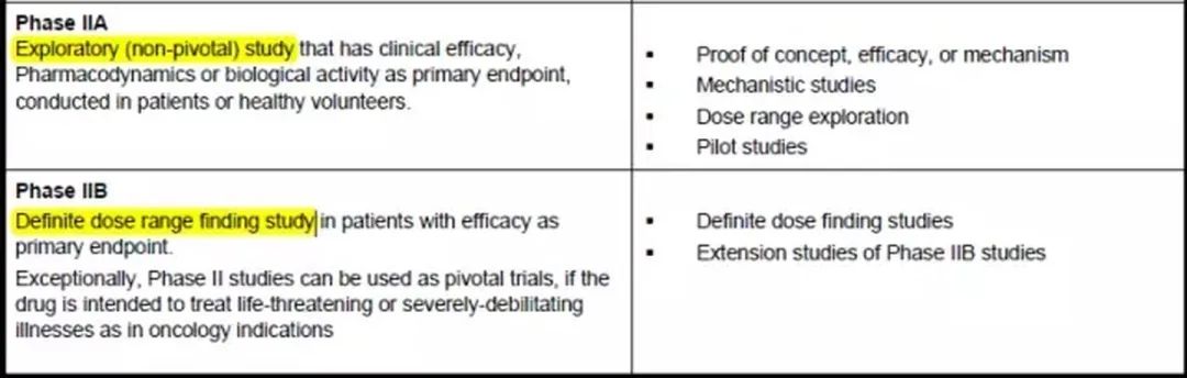 IIa进行概念验证、IIb进行剂量探索的的有以下来源(这种最常见):