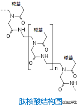 肽核酸(peptidenucleic acid,PNA):是具有类多肽骨架的DNA类似物,PNA的主链骨架是由N(2-氨基乙基)-甘氨酸与核酸碱基通过亚甲基羰基连接而成的。PNA可以特异性地与DNA或RNA杂交,形成稳定的复合体。