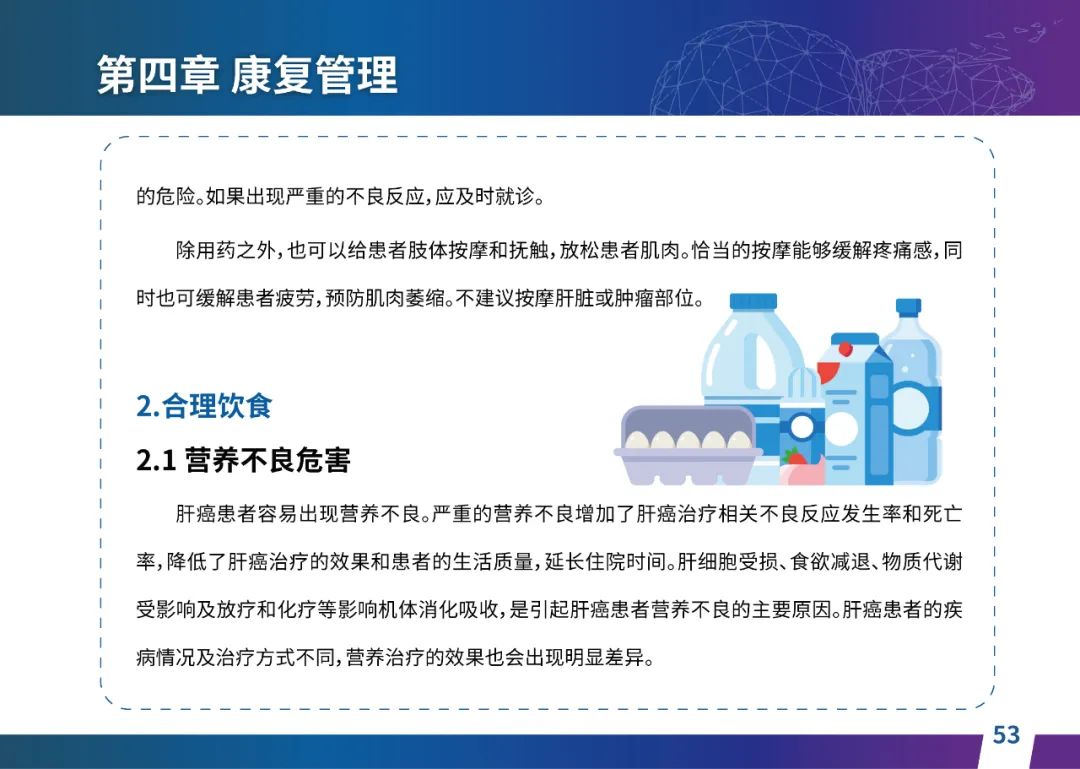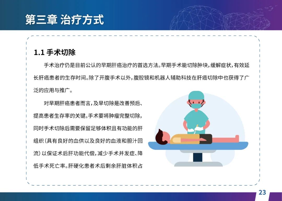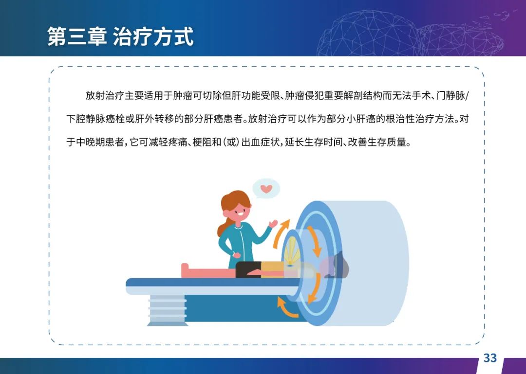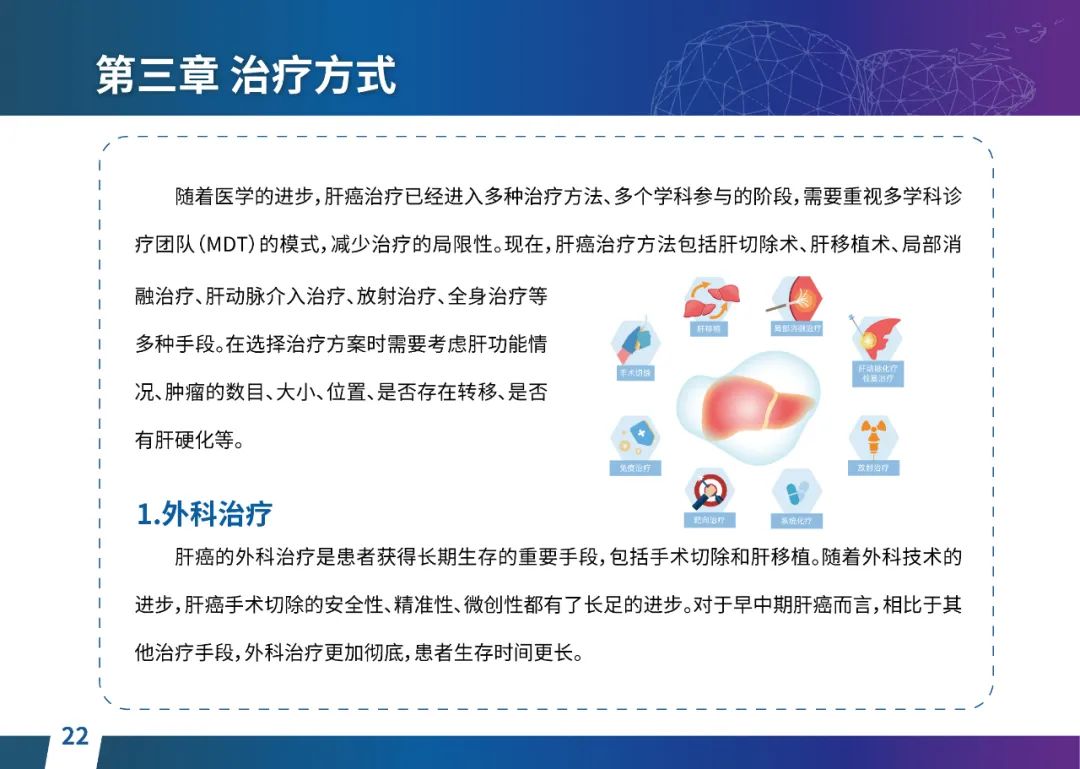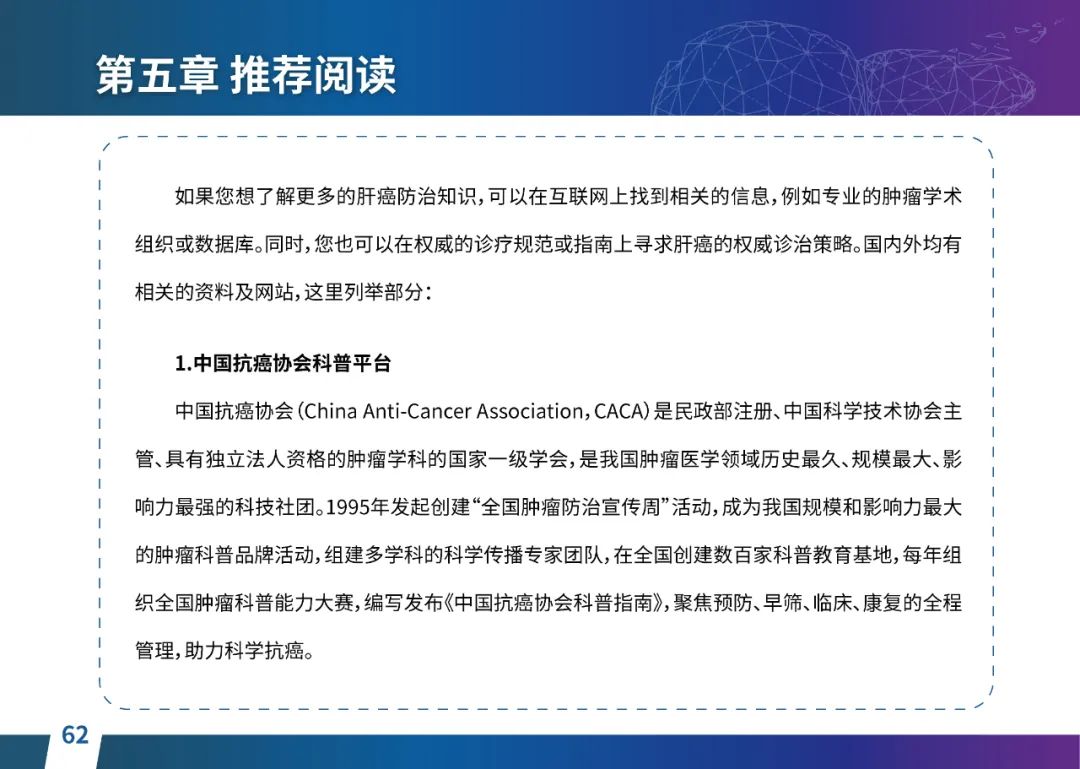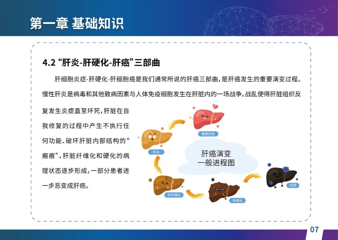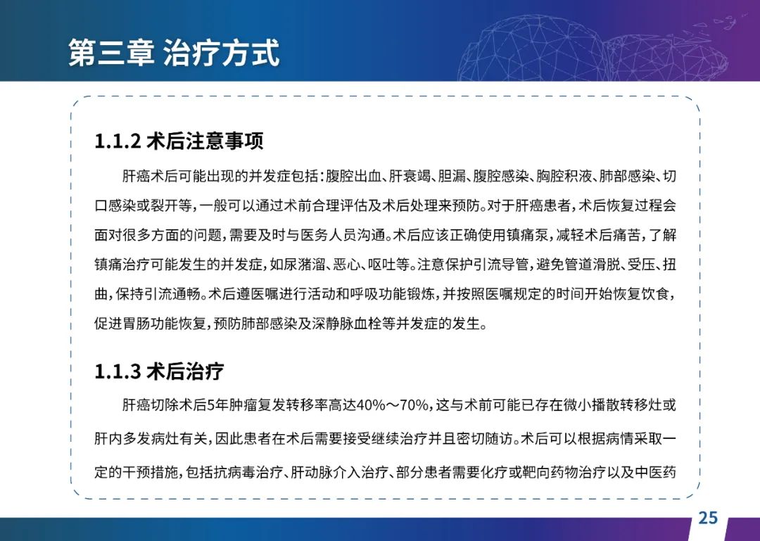 关于肝癌筛查手段,指南也提出了建议:肿瘤标志物血清甲胎蛋白(AFP)、异常凝血酶原(PIVKA-II)和肝脏超声检查是早期筛查的主要手段。对于肝脏超声和血清AFP筛查异常者,动态增强CT和多模态MRI扫描是明确诊断的首选影像学检查方法。建议高危人群每半年至少行一次血液AFP、异常凝血酶原(PIVKA-II)化验检查及肝脏B超检查,如果出现症状再去检查那么大部分患者都是中晚期。值得注意的是,基于ctDNA的液体活检肝癌早筛技术也被纳入指南建议:“ctDNA(循环肿瘤DNA)是由肿瘤释放至外周血的DNA片段,能够反映肿瘤的基因组信息,可用于早期诊断、监测疾病进展、评估治疗效果以及判断患者预后等。近年来,基于ctDNA的液体活检在肝癌早筛中展现出重要价值。突变和甲基化的共同检测及其与蛋白生化等传统标志物的联合应用,可以获得更好的筛查效果。有报道称,ctDNA用于肝癌早期筛查的灵敏度和特异度均优于血清AFP。同时检测多个指标的新型液体活检产品,已经在肝癌的早期筛查中显示出较好的应用场景。”《健康中国2030纲要》提出“推动基层肿瘤防治科普,提升癌症五年生存率,开展全民肿瘤防治科普宣传,建立健康生活方式,远离癌症高危因素;推动基层癌症早诊早治的科普宣传和技术突破”,撰写患者指南有助于指导国家癌症防控目标的落地,开展肿瘤防治科普宣传有利于全民健康。