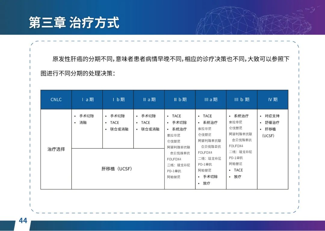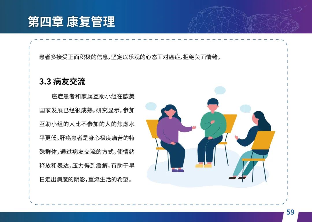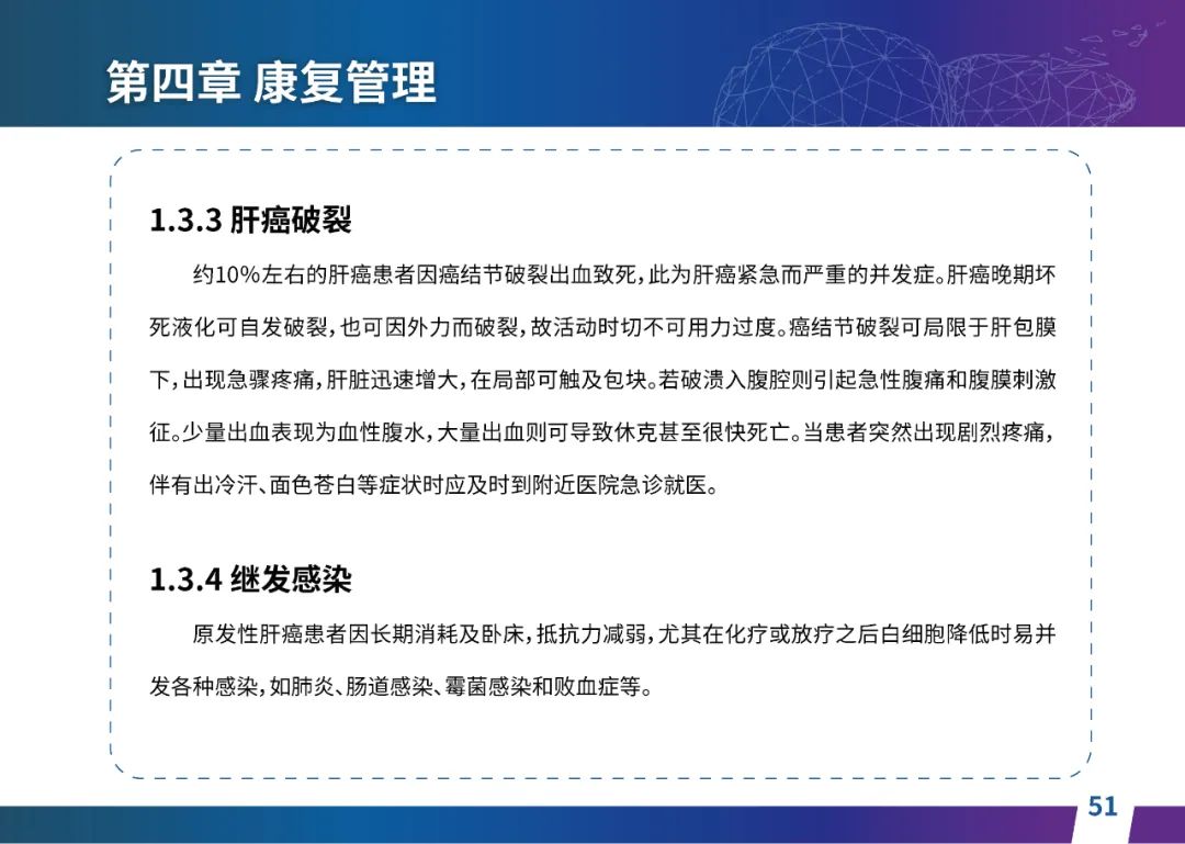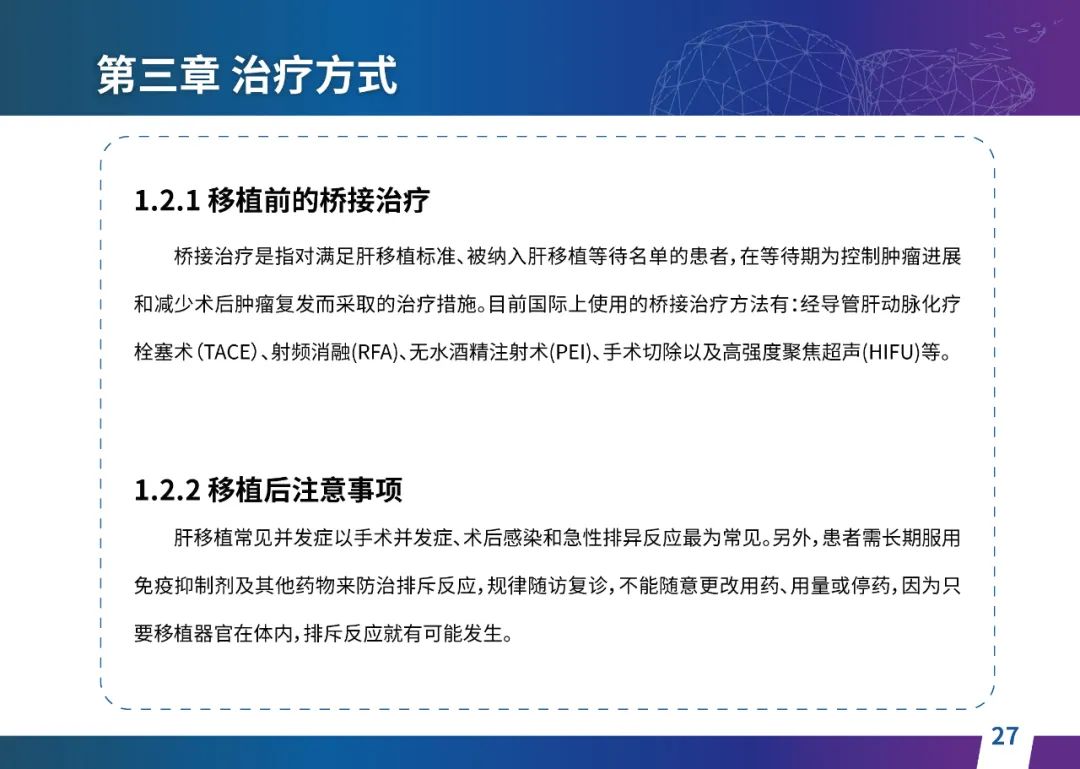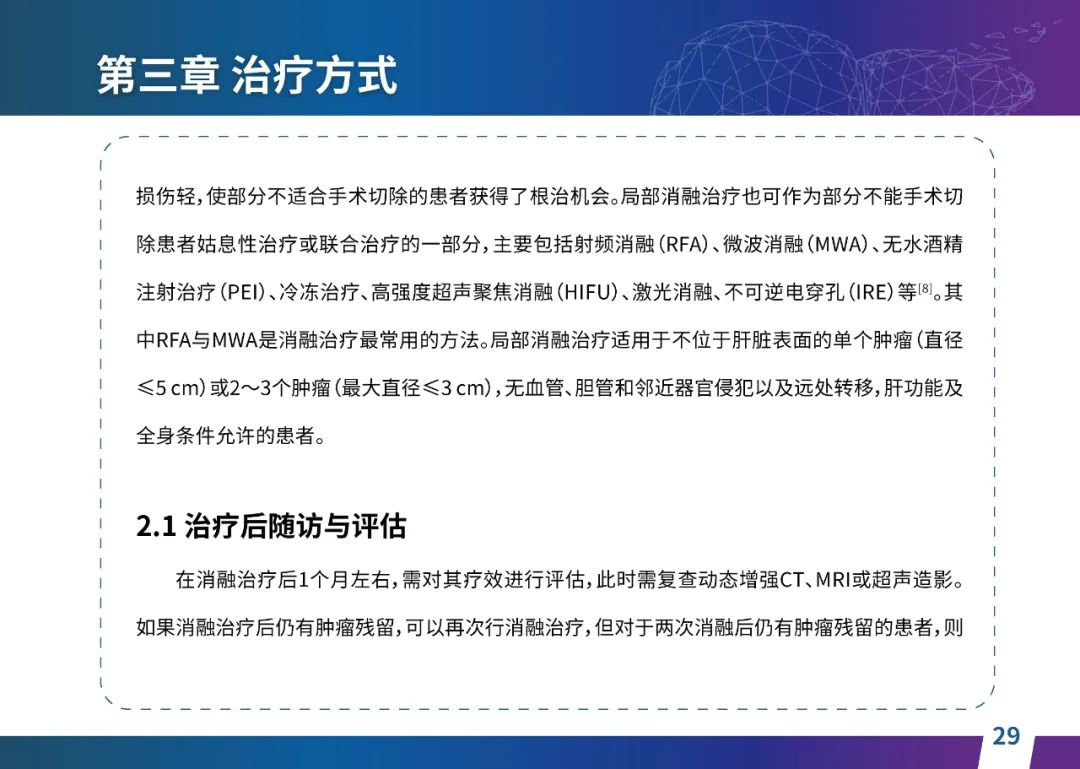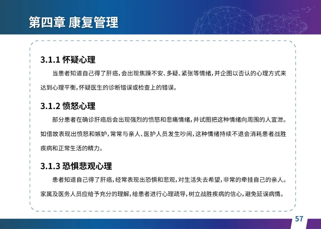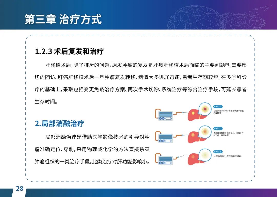 关于肝癌筛查手段,指南也提出了建议:肿瘤标志物血清甲胎蛋白(AFP)、异常凝血酶原(PIVKA-II)和肝脏超声检查是早期筛查的主要手段。对于肝脏超声和血清AFP筛查异常者,动态增强CT和多模态MRI扫描是明确诊断的首选影像学检查方法。建议高危人群每半年至少行一次血液AFP、异常凝血酶原(PIVKA-II)化验检查及肝脏B超检查,如果出现症状再去检查那么大部分患者都是中晚期。值得注意的是,基于ctDNA的液体活检肝癌早筛技术也被纳入指南建议:“ctDNA(循环肿瘤DNA)是由肿瘤释放至外周血的DNA片段,能够反映肿瘤的基因组信息,可用于早期诊断、监测疾病进展、评估治疗效果以及判断患者预后等。近年来,基于ctDNA的液体活检在肝癌早筛中展现出重要价值。突变和甲基化的共同检测及其与蛋白生化等传统标志物的联合应用,可以获得更好的筛查效果。有报道称,ctDNA用于肝癌早期筛查的灵敏度和特异度均优于血清AFP。同时检测多个指标的新型液体活检产品,已经在肝癌的早期筛查中显示出较好的应用场景。”《健康中国2030纲要》提出“推动基层肿瘤防治科普,提升癌症五年生存率,开展全民肿瘤防治科普宣传,建立健康生活方式,远离癌症高危因素;推动基层癌症早诊早治的科普宣传和技术突破”,撰写患者指南有助于指导国家癌症防控目标的落地,开展肿瘤防治科普宣传有利于全民健康。