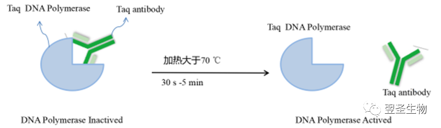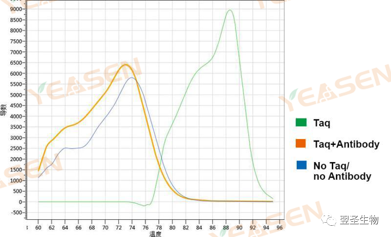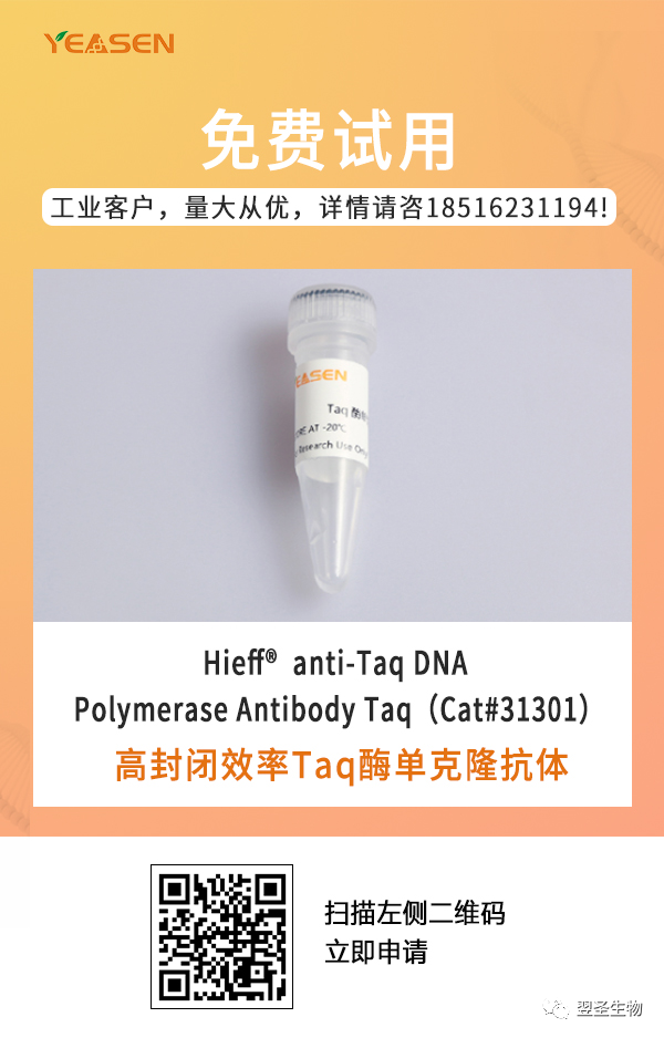 常规PCR技术因能够快速扩增任何已知的DNA片段而被广泛应用于分子生物学的各个领域。但常规PCR技术容易出现引物二聚体或错配引起的非特异性扩增等现象,造成实验结果的不准确性。热启动PCR能够很好的解决上述问题,是最常用的提高PCR特异性的方法。Taq antibody是抗Taq DNA聚合酶(简称Taq酶)的抗体,可在低温时结合于Taq DNA聚合酶,封闭其聚合酶活性,防止错配或引物二聚体引起非特异性扩增;在PCR预变性95℃加热时,抗体蛋白变性,释放DNA聚合酶活性,完成扩增反应,达到热启动的效果。 图1. Taq antibody高温快速失活,释放Taq DNA聚合酶活性 Taq antibody封闭热启动酶的应用 热启动酶在热启动PCR的应用方面较为广泛,不仅有效防止非特异性PCR产物,而且在较难扩增的PCR反应如单拷贝基因的扩增、多重PCR和超长片段的扩增等应用尤为突出,大大改观了传统PCR技术的局限性。在病原微生物检测、遗传病诊断和法医鉴定等各个领域等实际应用中颇为广泛。在应对全球爆发的新冠疫情方面,热启动酶亦贡献颇多。 市面上常见的热启动酶,按热启动修饰方法主要分为化学法、配体法和抗体法等。但化学修饰物不能够批量合成,而且需要较长的激活时间DNA聚合酶才能释放酶活;配体修饰DNA聚合酶只在20-25℃效果较好,到40℃时,聚合酶的活性就被释放出来,即酶活封闭效果不稳定,特异性不好;而抗体修饰的热启动酶可以达到很好的封闭酶活的效果,即对应的封闭效果最佳,酶活释放速度快,因此应用最为广泛,目前市面上应用于SARS-Cov-2的一步法RT-qPCR检测试剂的核心酶基本都是抗体法热启动酶。 Taq antibody作用机制解析 Taq antibody--减少非特异性扩增 以常用的Taq酶为例,Taq酶的聚合酶活性最适温度是72℃,但其在20℃-37℃下也具有一定聚合酶活性,在室温下配置反应体系或反应升温的时候,容易形成引物非特异性退火及引物二聚体,此时发生聚合反应,就会引起非特异性扩增。 当我们用Taq Antibody把Taq酶的聚合酶活性暂时封闭,使其在低温时处于无活性状态,在PCR预变性95℃加热时,Taq Antibody变性,解除封闭,Taq酶再现活性,就可以避免错配或引物二聚体引起的非特异性扩增。 Taq antibody--提高检测灵敏度 非特异性扩增的存在(可理解为“引物噪音”)是PCR反应的主要障碍,它会通过消耗引物和Taq酶显著降低目的基因扩增的灵敏度。 针对低丰度基因,抗体封闭一方面可以避免95℃预变性前的DNA聚合酶和模板的非特异性结合,提升PCR反应过程中DNA聚合酶的使用效率(使用效率可理解为与正确模板结合的效率);另一方面抗体封闭后,95℃预变性时,DNA解链(释放出正确的引物退火位点),热启动形式增加了引物与微量的正确模板碰撞退火的效率,从而可保证低丰度基因有效检出。 总之 抗体封闭热启动Taq酶可减少引物非特异性退火及引物二聚体的聚合反应的背景噪音信号,通过维持相对“纯净”的引物和模板等有效退火环境,有效提升灵敏度和扩增效率。 Taq antibody封闭Taq酶效果展示 我们来做一个对比,看看Taq Antibody是如何抑制非特异性扩增的。设置抗体封闭组(融合比例是1U Taq酶/0.1 μg Taq Antibody)和无抗体封闭组,将部分互补的引物对加入qPCR反应体系中,37℃孵育40 min,分别检测产物荧光值,如表1。荧光值增高则表示发生了聚合反应。 表1 Taq Antibody封闭效果 该抗体封闭组加入了翌圣生物的Taq酶单克隆抗体(Cat#31301ES),可以看到无抗体封闭组荧光值增高,表明Taq酶在37℃发生了聚合反应,而Taq酶单克隆抗体可以有效封闭聚合酶活性,由此可以抑制非特异性扩增。 我们将上述产物生成熔解曲线(图2),可以看到Taq酶单克隆抗体能有效封闭聚合酶活性,产物片段大小与无聚合酶对照组一致,而无抗体封闭组明显发生了聚合反应。 图2 Taq Antibody封闭效果熔解曲线 Taq antibody选择的认知局限 我们在选择热启动封闭抗体的时候,常常会步入以下误区: 误区一 热启动封闭抗体的好坏取决于抗体的亲和力 按照以往的认知,抗体有足够亲和力才能与DNA聚合酶结合,才能有效封闭。其实抗体结合于DNA聚合酶的活性封闭位点是有差异的,如果不能结合在有效阻断聚合酶活性的位点上,亲和力再高也是无用的。所以热启动封闭抗体结合位点非常重要,一个优质的热启动封闭抗体,应该能准确的结合活性封闭位点并阻断DNA聚合酶的聚合酶活性。 误区二 小鼠腹水生产的抗体性能稳定性不如大规模细胞悬浮生产 与人工操作的体外模拟生长环境的罐间悬浮生产不同,一方面腹水提供了天然的细胞生长环境,营养充足,有利于杂交瘤细胞的生长,通过控制相同遗传背景的小鼠数量即可保证生产的效率。在实际的热启动封闭抗体生产中,小鼠腹水生产非常稳定高产,月产40g不是难事。另一方面腹水属于天然免疫系统,抗体折叠修饰翻译更加天然,保证了抗体的结构性能。两种方式关键点均在于设置严苛的生产流程和质控标准。 误区三 预变性时间越短越好 PCR反应中预变性步骤是为了打开DNA中的二级结构,使DNA充分变性;如果使用了热启动DNA聚合酶,预变性步骤可以解除封闭,释放DNA聚合酶活性。 但由于DNA模板如果长时间暴露在95℃,pH<8.3的条件下容易造成脱嘌呤和断裂,DNA聚合酶长时间在高温下也可能活性降低,人们往往认为预变性时间越短越好。对此一是建议大家选择抗体封闭,因为相较于某些化学修饰法,抗体封闭的活性释放条件更温和,时间也更短;二