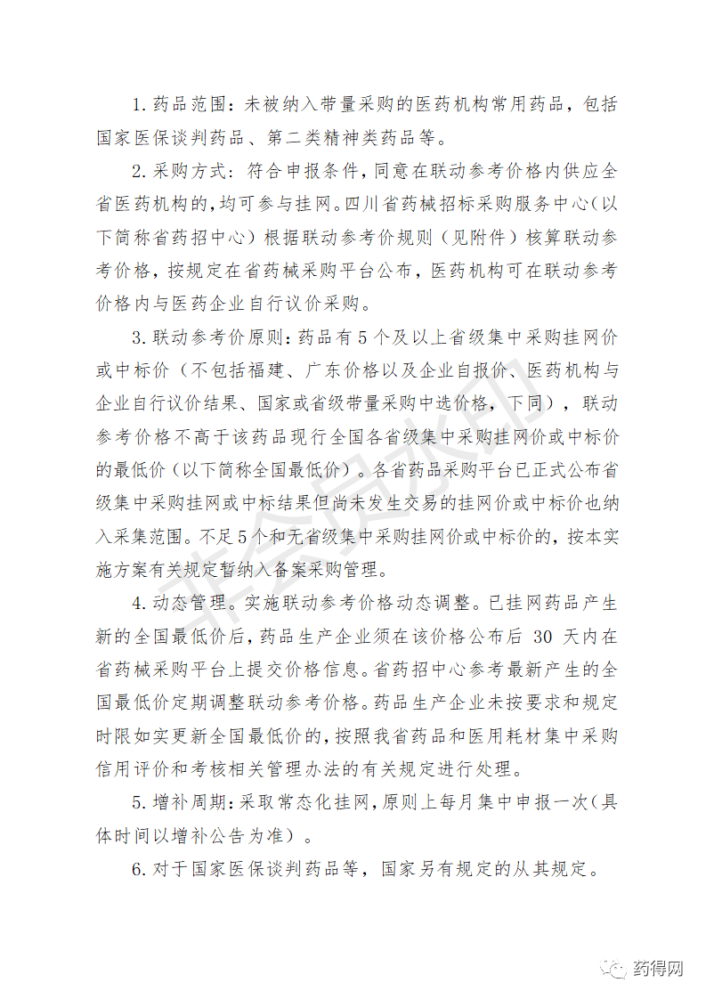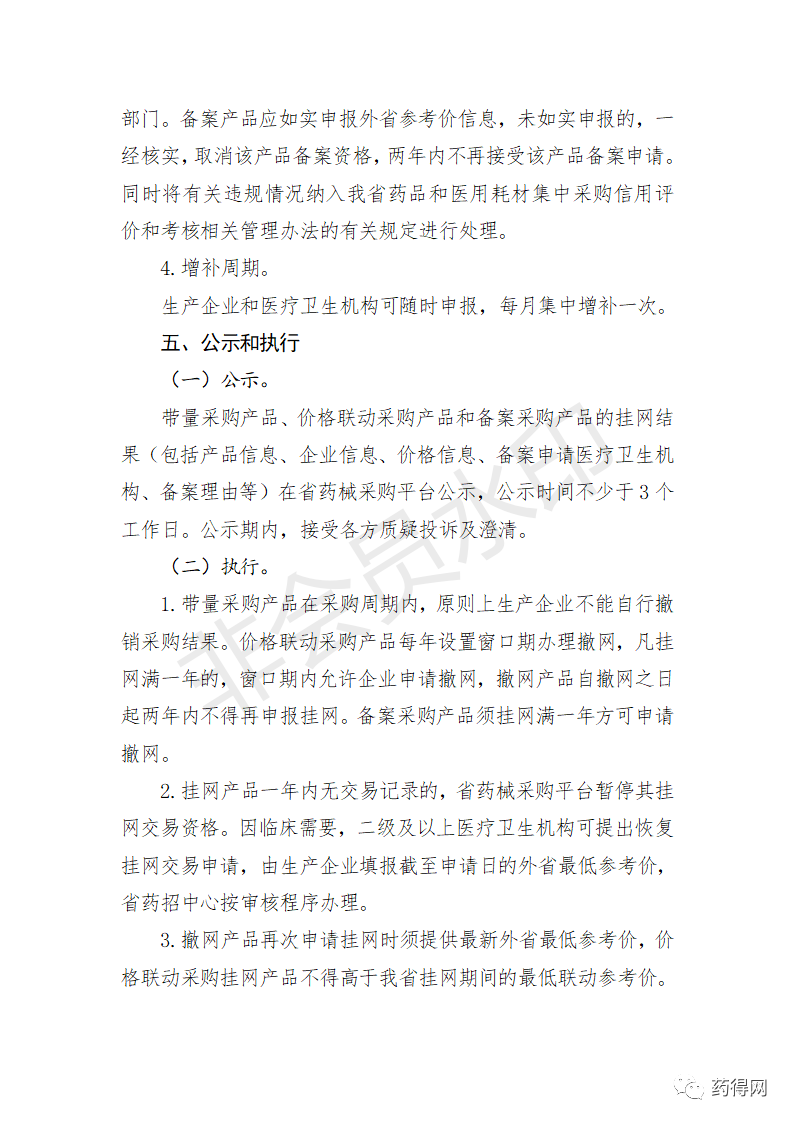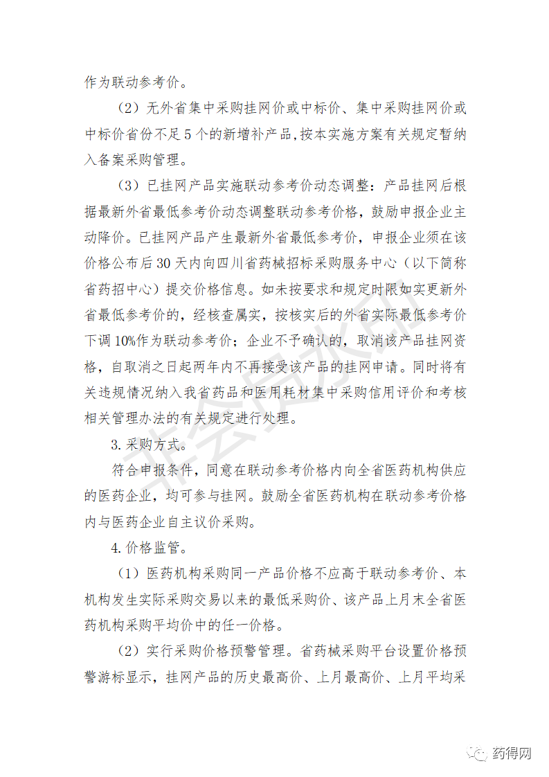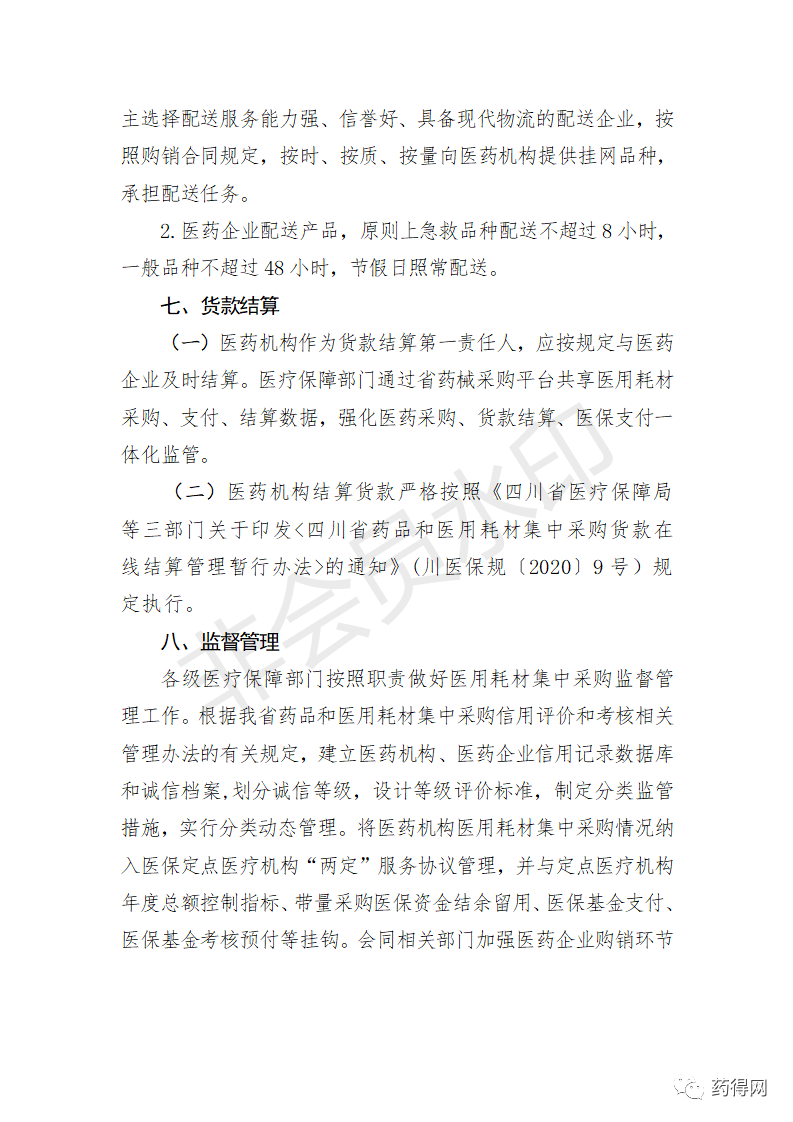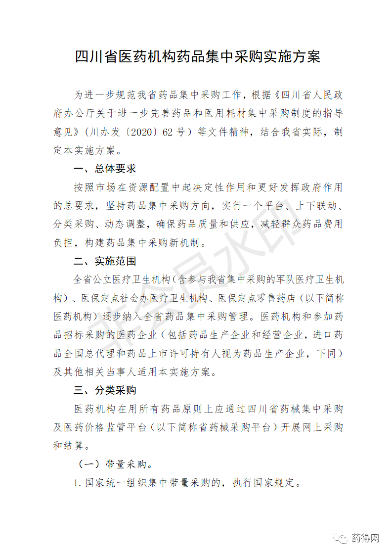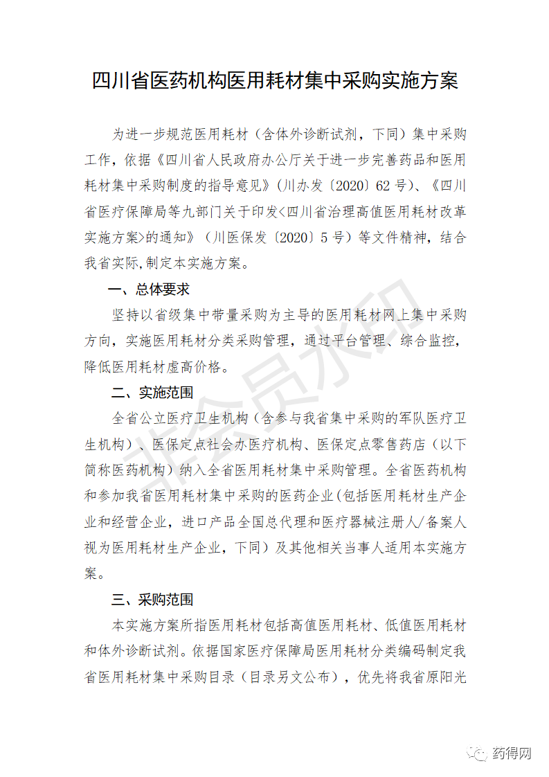 四川省医疗保障局关于印发《四川省医药机构药品集中采购实施方案》的通知四川省医疗保障局 关于印发《四川省医药机构药品集中采购实施方案》的通知 各市(州)医疗保障局,有关医药机构,相关企业: 为进一步完善我省医药机构药品集中采购制度,根据《四川省人民政府办公厅关于进一步完善药品和医用耗材集中采购制度的指导意见》(川办发〔2020〕62号)等文件精神,我局制定了《四川省医药机构药品集中采购实施方案》,现印发实施。 四川省医疗保障局 2021年2月19日 四川省医疗保障局关于印发《四川省医药机构医用耗材集中采购实施方案》的通知四川省医疗保障局 关于印发《四川省医药机构医用耗材集中采购实施方案》的通知 各市(州)医疗保障局,有关医药机构,相关企业: 为进一步完善我省医药机构医用耗材集中采购制度,根据《四川省人民政府办公厅关于进一步完善药品和医用耗材集中采购制度的指导意见》(川办发〔2020〕62号)和《四川省医疗保障局等九部门关于印发<四川省治理高值医用耗材改革实施方案>的通知》(川医保发〔2020〕5号)等文件精神,我局制定了《四川省医药机构医用耗材集中采购实施方案》,现印发实施。 四川省医疗保障局 2021年2月19日 源自:四川省医疗保障局 |