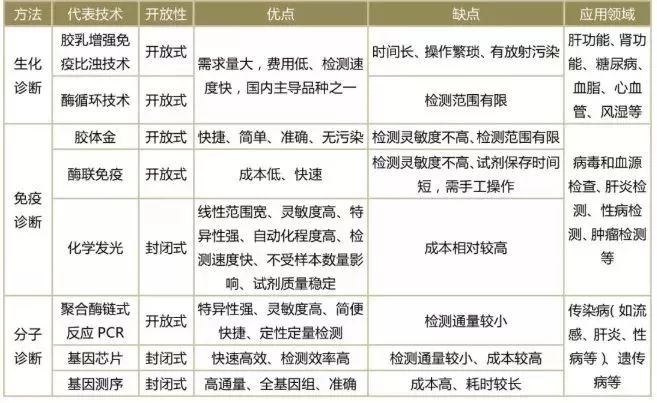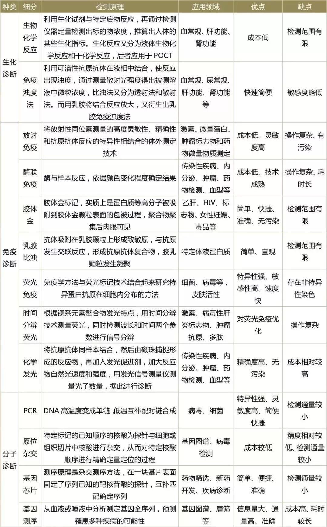 体外诊断行业,主要分为生化、免疫、分子、POCT、微生物、临检,不同的细分领域也有不同的发展路径,今天本文就生化、免疫、分子、POCT四大主流细分市场进行解剖! 01 细分市场发展路径 生化诊断:1)做精做深核心产品,进口替代,在布局国内市场的同时积极开拓国际市场;2)仪器与试剂协同发展,拥有自主知识产权、技术水平领先成为关键。 免疫诊断:1)化学发光法将逐步替代酶免法成为主流;2)大型公立医院,尤其是三甲医院进口替代;3)仪器兼容性好、测样量大且检测项目丰富的企业具备较强竞争优势;4)医疗资源下沉,基层医院迎来较为广阔的发展空间。 分子诊断:1)测序仪技术不断发展,布局肿瘤测序市场。2)储备生物大数据,丰富基因信息,从而真正服务于临床。 POCT:1)技术强,操作便捷的产品更加获得市场青睐;2)心血管类检测和传染病检测等细分领域将成为增长最快的市场。 体外诊断按照方法学分为生化诊断、免疫诊断、分子诊断和床旁快速诊断POCT。检测项目主要包括血液学和流式细胞检测、尿液检测、组织检测、微生物检测、组织检测、元素检测、基因检测等。 表1:体外诊断行业分类 表2:检测原理及应用领域 生化诊断在我国发展较早,为医院常规诊断检测项目,侧重于已经发生的疾病监测,未来增长速度较慢,试剂国产化率已达到70%以上。大部分仪器也已国产化,目前国产仪器仅在仪器检测速度和一体化上与国外仪器有差距。 免疫诊断是我国细分规模最大的体外诊断子行业并仍处于快速发展之中,高端的化学发光已逐步替代酶联免疫成为我国主流的免疫诊断方法,侧重于已经感染的疾病监测,市场规模达到免疫诊断总市场的70%以上。中低端试剂和仪器国产化程度较高,但三级医院等高端市场整体依然被海外巨头垄断,未来高端免疫诊断市场的进口替代是发展方向。 分子诊断在全球范围内都处于发展初期,对感染初期和有可能发生的基因性疾病具有独特的检测优势,未来将保持快速增长。 02 行业发展趋势 (一)量值溯源+标准化 随着国家医保控费等政策的逐渐推进和技术的不断更新,IVD行业迎来快速发展的机遇。作为临床诊疗的重要参考依据,高灵敏度和高准确度是降低检验结果误差的重要基础。量值溯源通过对整个检测系统,包括对照品、试剂、仪器、人员和操作流程进行验证,为检验结果的准确性提供重要支撑,以便于将检验结果追溯到国际最标准的有证参考物质,是医学检验标准化的重要途径。 目前由于不同检验机构之间还没有建立完善的检验流程和相应标准,加上操作人员技术水平参差不齐,导至检验结果在不同医疗机构之间无法得到相互认可,重复检测现象比较严重。随着国家医改的不断深入和检验标准化的逐步完善,医疗机构互认检验结果是必然趋势,未来能否建立量值溯源的质量体系将成为体外诊断企业重要竞争优势。 (二)封闭式+集采+综合服务 仪器与试剂捆绑销售成为国内体外诊断公司主流销售模式。由于体外诊断产品种类繁多,医院作为体外诊断试剂销售的主要渠道,在招标时拥有强势地位,为了获得医院渠道,体外诊断产品公司往往通过免费向医院投放检验仪器,并约定医院在一定期限内(一般为5年)采购公司相应的试剂,通过这种捆绑式销售来实现产品在医院的销售。随着体外诊断对精度的要求逐步提升,仪器和试剂配套使用的专业性的加强,以及企业获取更大利润空间的驱动,体外诊断仪器与试剂形成封闭式系统将成为未来发展的重要趋势。 医院通过集中采购降低成本。在国家医保控费的背景下,由于体外诊断产品种类繁多,医院通过集中采购既能满足检验科的采购需求,也能有效降低采购成本和人力成本,从而实现双赢。 通过综合服务提升渠道商客户粘性。体外诊断仪器销售不仅需要安装和调试,更需要后期不断维护,而试剂由于存在质保期的限制,对于冷链运输和库存管理要求较高,再加上医院仓库面积有限无法储备足量库存,导至对于试剂的周转效率要求很高,因此,在提供仪器和试剂销售的前提下,如果进一步提供相应增值服务,才能最大限度获得医院认可,从而进一步增加客户粘性。 (三)并购重组+拓展产业链 企业在发展过程中,内生增长和外部并购都是重要的成长路径。由于国内体外诊断细分行业众多,虽然高速增长,但短期内规模仍相对有限,加上每个子行业都有国内外厂商的激烈竞争,因此想在一个子行业里获得绝对的市场份额比较困难,所以积极地纵向拓展、横向合并可以让企业获得多个增长点,成为企业不断发展的重要选择。 03 行业驱动力 目前我国体外诊断费用占整个医疗保健支出的比例较低,但保持快速增长趋势。我国人口总数占世界总人口数的22%,而体外诊断的市场份额却仅占全球市场的3%,根据 Boston Medical 的数据,2016年我国人均IVD产品支出仅约4.6美元,世界人均IVD支出约8.5美元,发达国家达到了25-30美元,与发达国家相比差距较大。随着人们对预防诊断的逐步重视,体外诊断费占医疗保险支出的比例将持续上升,未来市场潜在需求巨大。罗氏诊断业务在以中国为代表的亚太区增速持续超过15%,相比美国、日本等发达国家具有较高的增长率。 从下游需求端来看,体外诊断行业的需求主要来自于疾病的预防和治疗,而由于中国庞大的人口基数和各类疾病的高发,形成了对体外诊断强劲且持续的需求,造就了体