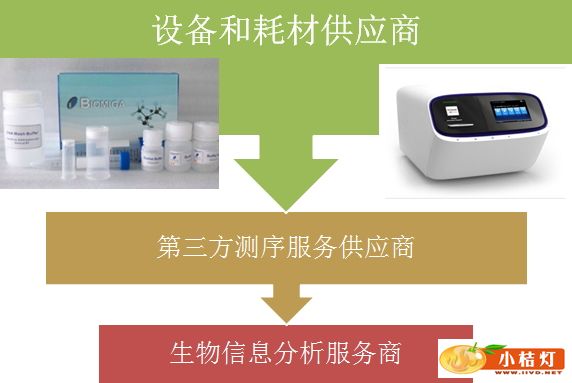 下游为生物信息分析服务商,现处于起步阶段,由于数据分析的技术瓶颈日益突显,待发掘的市场潜力最大,也逐渐形成了一个新的职业——“遗传信息分析师”。