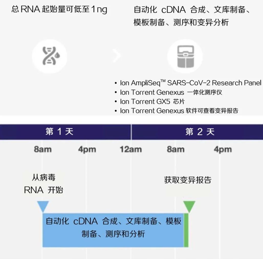 流行病学研究是传染病公共卫生防控的重要组成部分。流行病学专家需要回答传染病的起源和传播、病原突变率、新毒株特征,以及现有数据如何预测新型病毒的出现这几个关键问题。 在仅需检测病原体时,我们首选qPCR方法。另一方面,NGS技术结合相关生物信息学分析,又可以帮助我们深入回答更多关键问题,比如疾病传播、起源、进化和毒力等。此外,便捷、简单和自动化的NGS工作流程,可以让不熟悉该方法的研究人员也能开展复杂的研究,并获得有意义的结果。 NGS的优势在哪里? NGS技术可让我们深入了解病原,研究人员能够对毒株的出现、接触者追踪、疫情监测(包括通过污水分析)、人畜共患传播等等进行回顾性研究,以及通过进化分析对病毒分型。 病原生物学是了解传播过程和毒株毒力的关键 在回顾性研究中,研究人员可使用样本库中的FFPE样本。NGS快速、自动化的工作流程可并行处理多份样本,获取病原体(包括所有突变株和血清型)的完整基因组序列。 感染控制策略是否有效,监测溯源至关重要 工作人员可以依据病毒样本测序信息绘制感染传播图,确定人群的总体阳性率。为了确保时效性,这些分析必须快速、可扩展并且准确。 污水及环境监测,追踪跨物种传播 NGS在病原变异分析和毒株鉴定方面具备独特的优势。动物源传播应给予特别关注,在这情况下,病原体通常可以从动物源头通过中间宿主传染给人类。NGS技术可鉴别这些毒株,并跟踪其突变情况。 分析识别初始感染源、跟踪地理传播情况,制定疾病控制策略 有多种分析方法可以鉴定和区分病毒突变株,分子生物学技术是最常用的方法。通过对病毒基因组特异的可变区测序,可以确定特定病原突变株是否存在系统进化关系。 利用NGS技术应对危机 NGS技术增加了我们对新冠病毒的认识,但常规NGS方法周转时间长、投入资源多,需要操作人员具备专业知识。因此在流病控制方面,NGS未得到充分利用。 理想的NGS工作流程应具备可操作性,并可集成到实验室现有工作流程中。要求测序系统运行稳定,保证不同研究组和地理区域之间实验结果的一致性。在研究项目切换时,系统也必须能应对新挑战,可拓展新方案来跟踪、鉴定病原体。 评价新工作流程时,我们都会把它带来的附加值与增加的成本做个比较。NGS分析方法的自动化就具有极大的价值,因为它能够保证检测结果的一致性,帮助实验室工作人员专注于更高价值的工作。 快速开展新冠病毒流行病学研究 Ion Torrent Genexus 一体化测序仪与 Ion AmpliSeq SARS-CoV-2 Research Panel 联合,解决了NGS用于新冠流行病学研究的绝大部分障碍。方案快速、自动化,1天内即完成从核酸到报告的全流程,帮助实验室以前所未有的速度获取完整新冠基因组信息。 图1. 使用Genexus一体化测序仪和Ion AmpliSeq SARS-CoV-2 Research Panel分析16份样本的典型工作流程,快速且自动 Genexus是全新的、革命性NGS平台,整个实验流程中只需两步手动操作。 Ion AmpliSeq SARS-CoV-2 Research Panel包括两个引物池,扩增子长度为125到275bp,可覆盖超过99%的新冠病毒基因组,涵盖突变株和所有血清型。 完整工作流程,快速周转时间(约24小时),手动操作时间约为5分钟,测序准确,单核苷酸变异(SNV)错误率更低,RNA样本起始量可低至1ng,并采用高分辨率长读长测序,所有这些因素都对流行病学的病毒分型工作十分有利。 近期文献报道显示,基于Genexus和Ion Ampliseq SARS-CoV-2 Research panel对新冠病毒进行全基因组测序,日本科学家首次发现巴西变异病毒株SARS-CoV-2 P.1系列1。