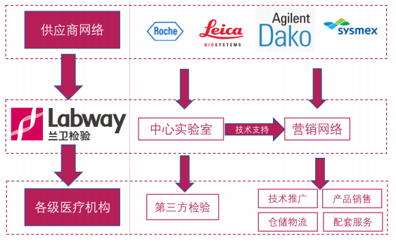 | 兰卫检验是一家为检验诊断行业提供整体解决方案的综合服务商,面向各级医疗机构提供第三方医学检验和病理诊断服务、国内外知名品牌体外诊断产品以及其他专业技术支持。 公司的体系以独立医学实验室为区域中心,通过自建和外延并购扩张,实现区域内医学检验结果互认,病理诊断资源协同共享。公司还与合作伙伴共同新设了上海英飞、东莞兰卫等控股子公司。兰卫检验还代理销售罗氏(RHHBF.US)、希森美康、徕卡和 DAKO等世界头部诊断公司的医学检验和病理诊断产品,在华东、华中、华南多个省有销售网络,其中在湖南、湖北地区有较高的市场占有率。作为多家品牌的一级代理,部分产品销售业务可向外包检验服务转化。不过,2020年初受疫情影响,兰卫检验体外诊断产品的临床使用量和常规医学诊断服务的检验量减少,体外诊断产品销售收入有所下降。2020 年下半年,随着国内疫情得到有效控制并趋于稳定,兰卫检验各项业务已逐步恢复。2020 年1至9月,其经审阅的营业收入约为 8.64亿元,扣除非经常性损益后归属于母公司股东的净利润为 0.89亿元,同比均有所上升。招股书显示,预计2020年,兰卫检验营收为12.1至12.7亿元,归母净利润预计为1.1至1.25亿元。而在未来,如若体外诊断产品领域全面实施“一票制”和“带量采购”且采购价格大幅下降,虽然兰卫检验的医学检验及病理诊断服务不会受到影响,但体外诊断产品销售可能将受到冲击。招股书显示,如果政策全面实施,兰卫检验或将把体外诊断产品销售业务转型为流通领域的专业服务商。2019年,兰卫检曾拟A股IPO ,最后终止上市辅导。据悉,此次IPO,兰卫检验拟募资20.64亿元,其中,约1.19亿元将用于实验室升级建设项目,0.57亿元用于信息化平台建设项目,以及0.3亿元用于医学检验研发中心建设项目。在兰卫检验的规划中,未来几年,其将以现有中心实验室为基础,通过实验室升级项目和信息化平台建设项目从“区域检验中心”走向“检验+病理+公共卫生+科研+技术培训”五合一的区域平台。 |