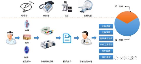 1. 行业基本情况 体外诊断(IVD)能够影响60%的临床治疗方案,但其费用只占整个临床治疗费用的2%,因此体外诊断具有较大的商业价值以及实际意义。 体外诊断按检测原理或检测方法分类有生化诊断、免疫诊断、分子诊断、血液、尿液诊断、微生物诊断、即时检测(POCT)等七大类。 体外诊断产业链是由上游原材料、中游体外诊断试剂和仪器、下游服务和需求共同组成。