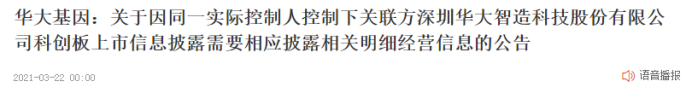 3月22日晚间,华大基因发布了关于同一实际控制下关联方华大智造在科创板上市前的信息披露公告。