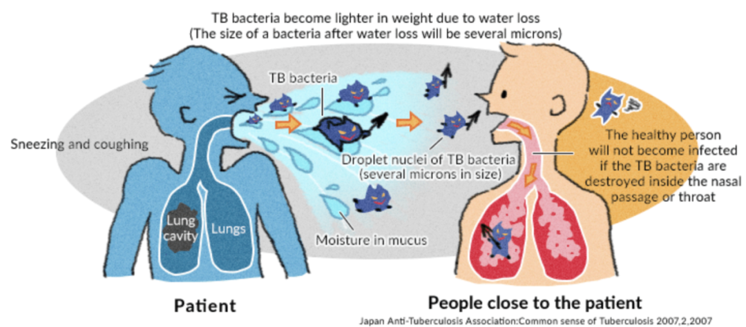 2019年结核病>10万的国家和地区 Global tuberculosis report 2020. Geneva: World Health Organization; 2020. Licence: CC BY-NC-SA 3.0 IGO. 在我国,每年新发结核病患者数量多达90万,新发耐多药结核病患者7万(2018年数据)。我国是全球30个结核病高负担国家之一。 根据《2010年全国第五次结核病流行病学抽样调查报告》显示,我国结核疫情现状可以用四个“高”进行总结:感染率高(44.5%)、患病率高(367/10万)、耐药率高(18.6/10万)且死亡率高(9.8/10万)。 2010年全国不同性别-年龄组活动性肺结核患病率 2010年全国第五次结核病流行病学抽样调查报告.中国防痨杂志, 2012, 34(8): 485-508. 近年来,校园群发肺结核事件时有发生,诸如2017年11月湖南桃江四中肺结核暴发事件,在2015级364班中有20多个学生被确诊为肺结核;2020年10月份江苏师范大学文学院有十几名学生感染肺结核。 结核的传染源:通常为正在排菌的涂阳肺结核患者。此类患者在咳嗽、咳痰时会排出大量的结核杆菌,且痰中的结核杆菌越多,其传染的危险性越大。 传播途径:通常通过呼吸道传染,以飞沫传染为最主要的方式。咳嗽、打喷嚏是肺结核患者产生飞沫的主要方式,健康人可以因吸入患者喷出的带有结核杆菌的飞沫而受到感染。其次是经消化道进入人体,如饮用未经消毒带有大量结核杆菌的牛奶可能引起肠道感染。 otsuka 世界上约有三分之一(约20亿)的人口感染结核杆菌,但其中只有很小一部分人会患上结核病。因为,约有90%的结核杆菌感染者为无症状患者(潜伏感染,LTBI),并有10%的感染者会发展为开放性结核病。而感染后是否发病与人体免疫力、结核杆菌数量以及毒力等因素都密切相关。 肺结核的易感人群 一般来说,所有人都是肺结核的易感人群。免疫力低下的人感染结核菌后更容易发病,如幼儿、老年人、HIV(艾滋病毒)感染者。艾滋病病毒感染者特别容易感染结核病,而且合并感染很常见
